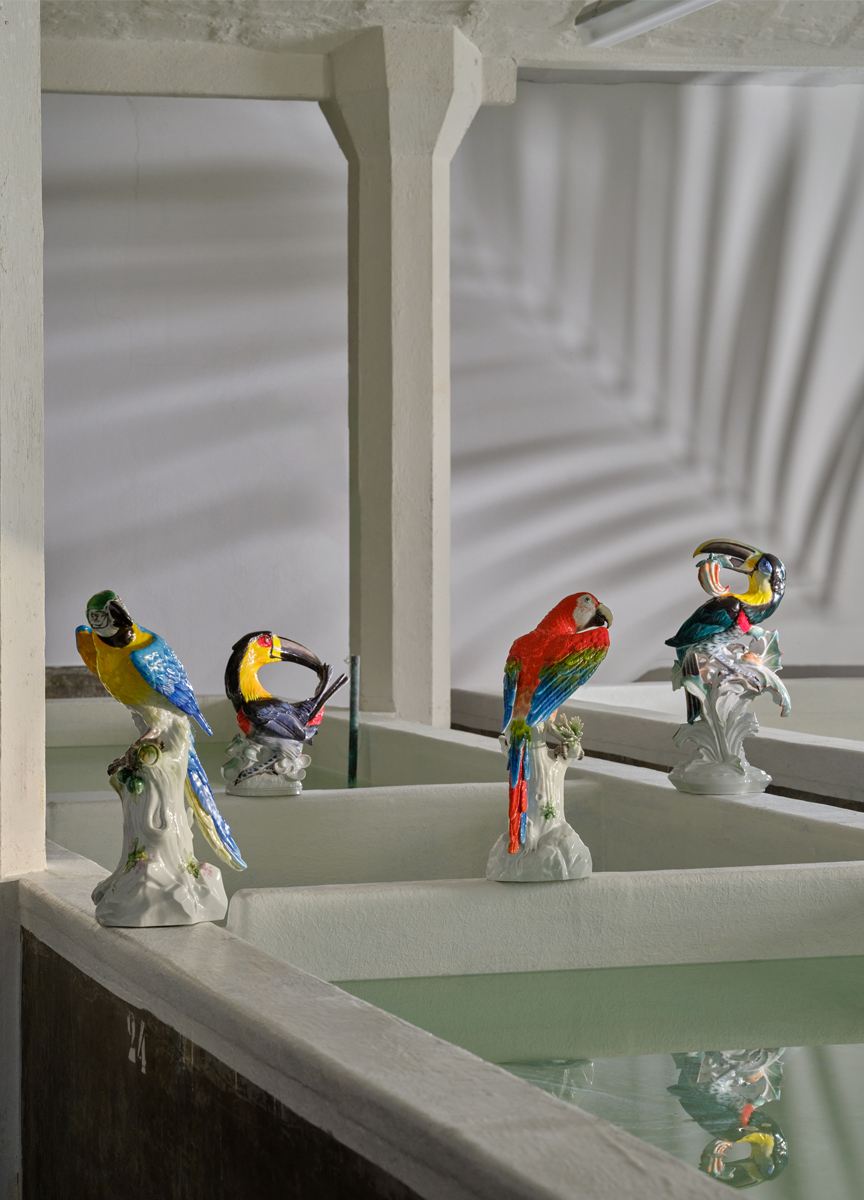 Der größte Regenwald, die artenreichste Savanne, der wasserreichste Fluss: Amazonien ist eine Region der Superlative. Der Amazonasregenwald erstreckt sich über einen großen Teil des Nordwestens Brasiliens bis nach Kolumbien, Peru sowie andere südamerikanische Länder und ist Heimat unzähliger Tierund Pflanzenarten. Doch es ist ein Paradies, das durch Rodung, Waldbrände und den Klimawandel so bedroht ist wie nie zuvor. Begleiten Sie MEISSEN auf eine fantastische Reise durch die Flora und Fauna des tropischen Regenwaldes des Amazonas. Mit der neuen „The Amazon Collection“ erweckt MEISSEN die außergewöhnliche Schönheit dieser Landschaft, in und auf „Weißem Gold“, zum Leben und zeigt damit das gesamte künstlerische Können der Manufaktur. Die mannigfaltige Artenvielfalt erstrahlt dabei auf drei großformatigen Wandbildern, welche zu einem Triptychon kombiniert werden können, einer exklusiven Bodenvase und fünf MEISSEN Henkelbechern.