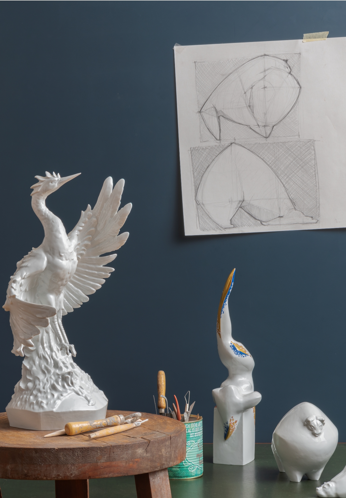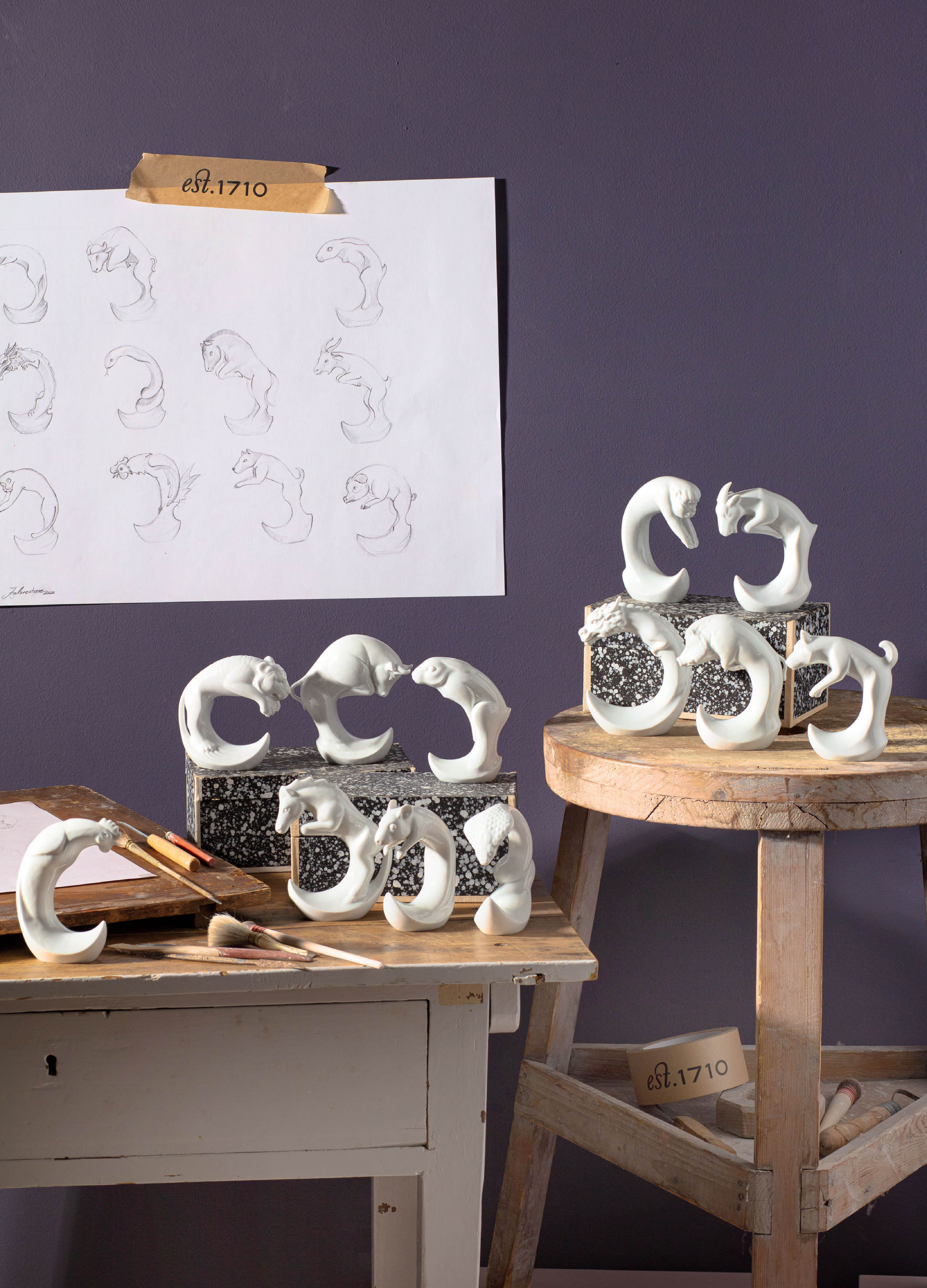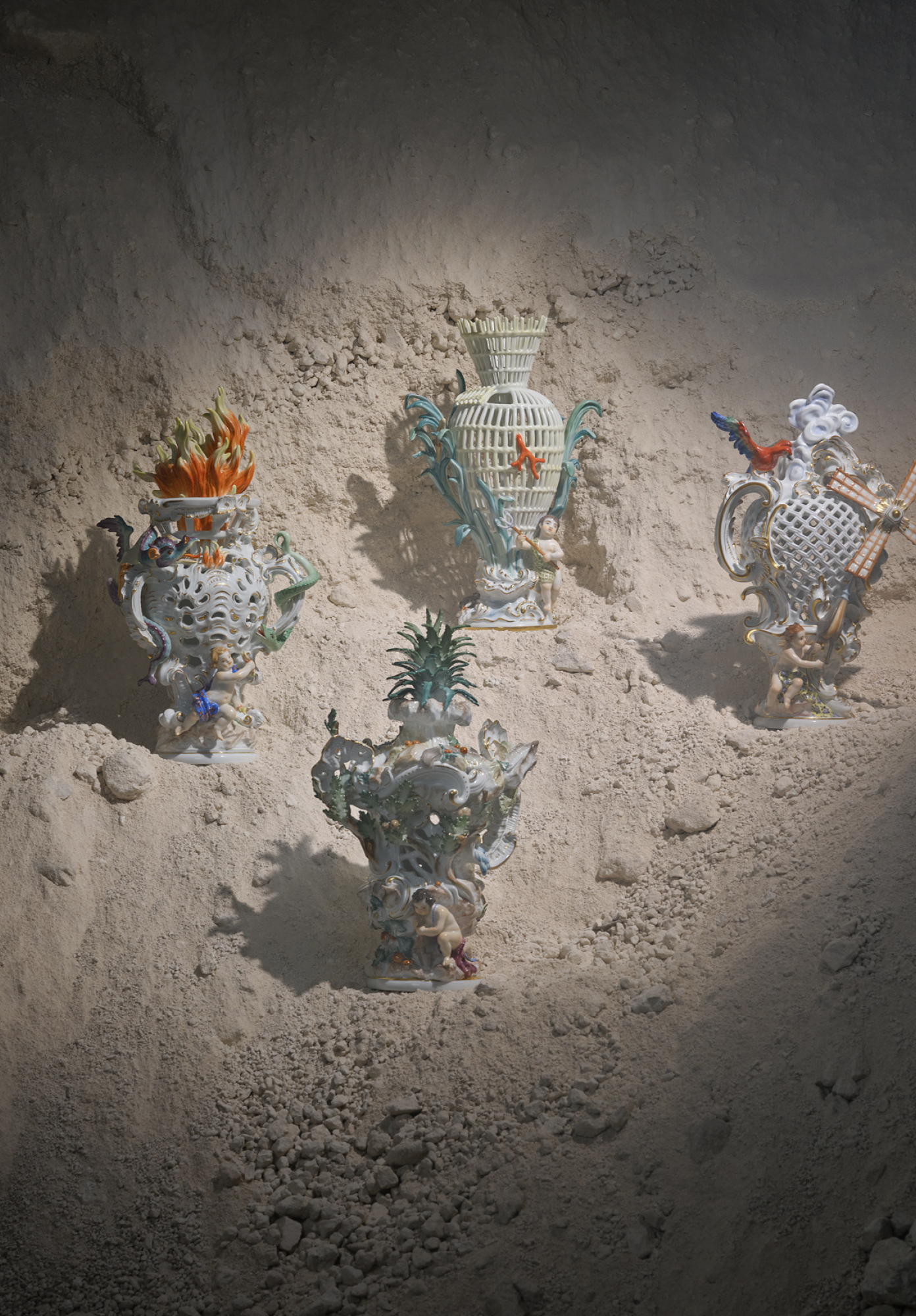 Die Kunstwerke von Maria Walther erschaffen eine faszinierende Welt voller Symbolkraft und unerwarteter Geschichten aus Meissener Porzellan.