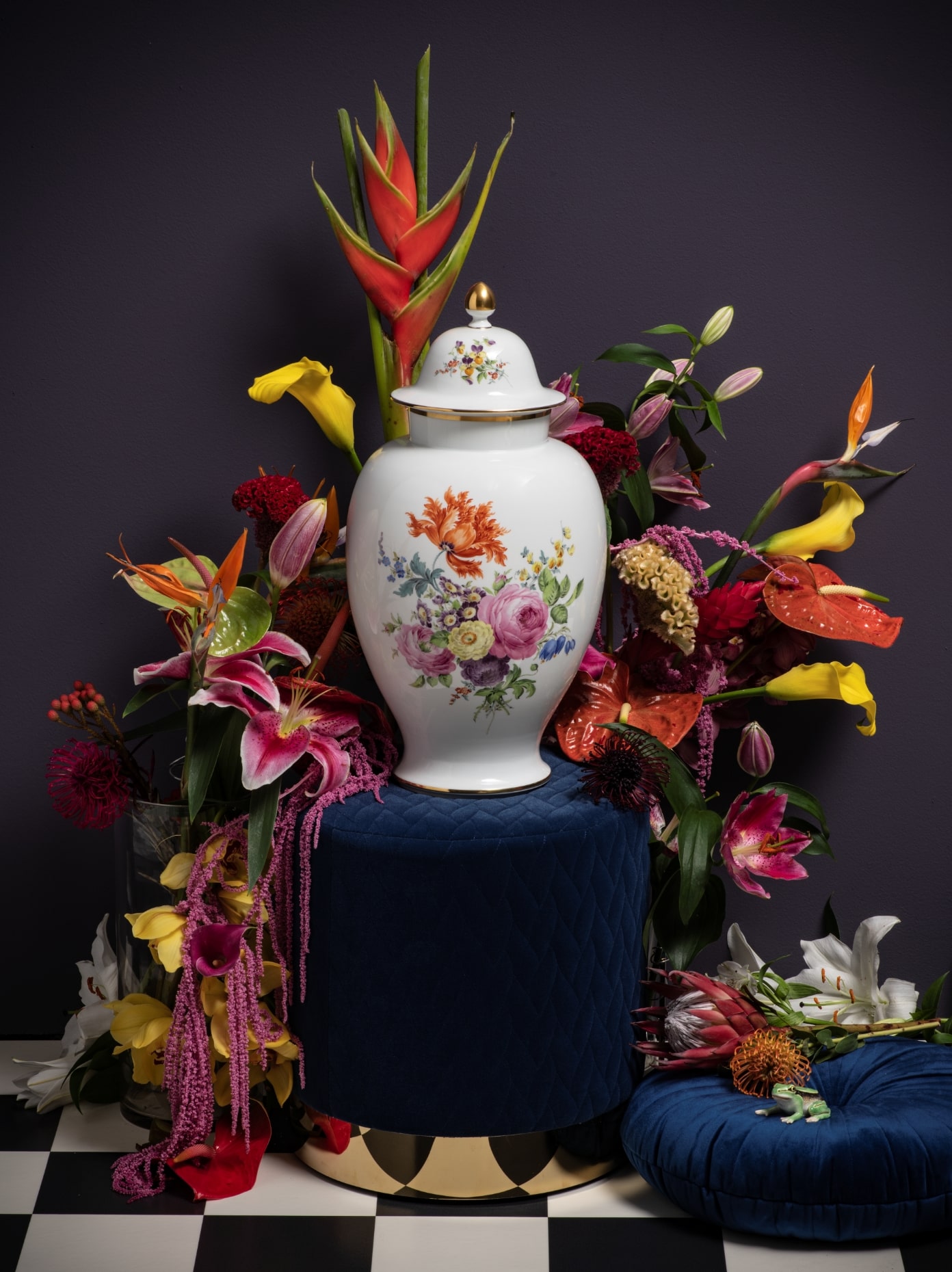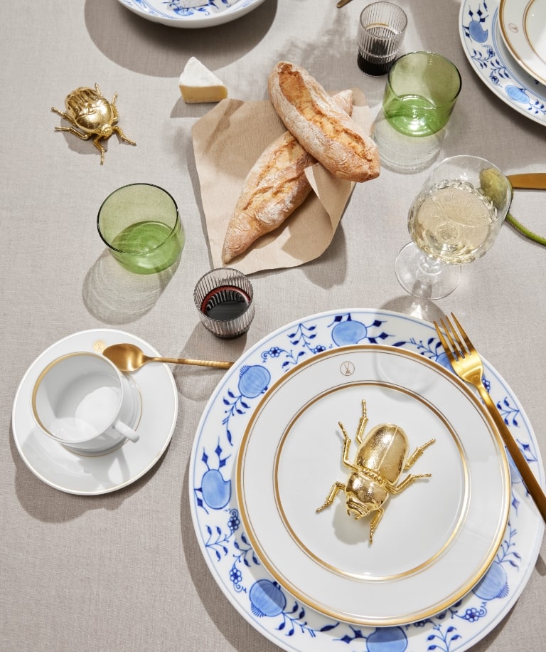 Bis heute ist die Tradition der Blumenmalerei bei MEISSEN stetig gewachsen und hat viele Bereicherungen und Verfeinerungen erfahren. Dabei lassen sich die Porzellanmaler heute allein nicht nur von der Natur inspirieren, sondern auch vom künstlerischen Schaffen ihrer Zeit. So ist die neue Kollektion „Giant Bloom“ eine großflächige Blumenmalerei auf der puristischen Form „MEISSEN® Cosmopolitan“, die den modernen Charakter der Tisch- und Tafelkultur unserer Manufaktur unterstreicht. Mit der filigranen „Blue Orchid“ wurde eines der beliebtesten Dekore von Professor Heinz Werner aus dem Jahr 1970 neu interpretiert und die Moderne transportiert. Auch der bekannte Illustrator Olaf Hajek zerlegt in seinen Werken für MEISSEN gar die Grenzen zwischen Realität und Imagination und schafft eine ganz eigene Bildsprache fantastischer Gärten und paradiesischer Märchenwelten mit atemberaubenden floralen Elementen.