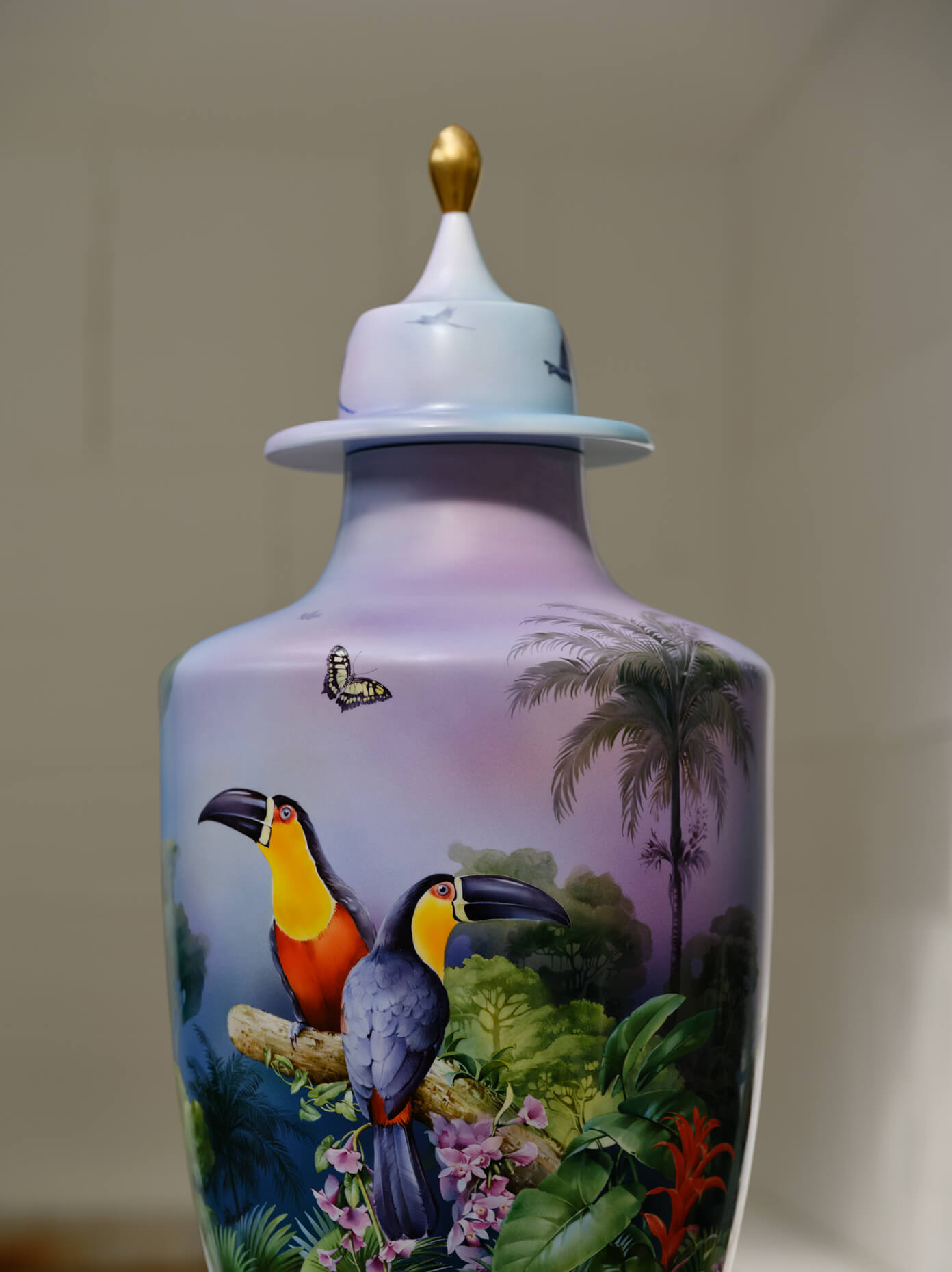 Wenn tropischer Regenwald auf einzigartiges Kunsthandwerk trifft, dann entsteht farbenfrohe Leidenschaft in höchster Porzellanqualität.