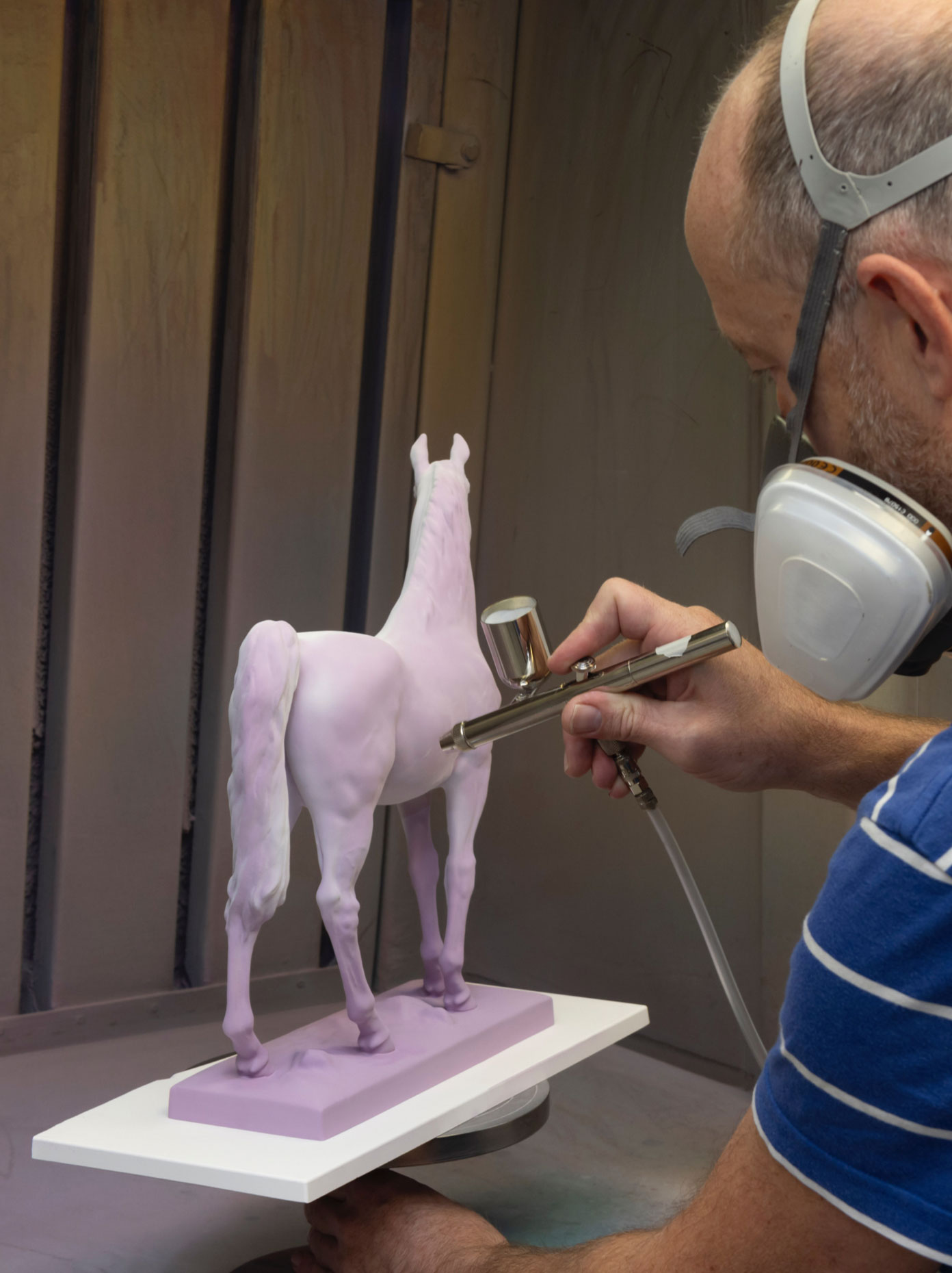 Im Laufe der Jahrhunderte sollten zudem weitere hochtalentierte Modelleure in die Fußstapfen von Kirchner und Kaendler treten und das Portfolio von Meissener Porzellan-Figuren um unzählige atemberaubende Tierplastiken erweitern – ob Paul Walther, Erich Oehme oder auch der große Jörg Danielczyk. Nachdem Danielczyk bereits 9 Jahre für die Manufaktur tätig war, wählte der damalige Modellmeister, Peter Strang, ihn aus einer Reihe von Manufakturisten eher zufällig aus, um ein Pferd zu modellieren. Nicht irgendein Pferd, sondern eine echte Berühmheit des Pferdesports: Die Hessenstute Halla, die zusammen mit Hans Günter Winkler mehrmals Gold bei den olympischen Sommerspielen gewann. Danielcyk schaffte es, den Charakter des tierischen Modells vollständig zu durchdringen und wiederzugeben, sodass der begeisterte Peter Strang ihn als Schüler zu sich nahm und aus ihm den großen Modelleur formte, der er bis zu seiner Pensionierung im Jahre 2017 war. Diese Begabung konnte er auch 2013 bei der Erschaffung des edlen Arabers unter Beweis stellen, welcher als Vorbild für die drei lila Ehrenpreise des IFRF dienten.