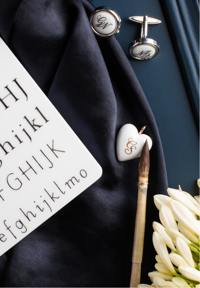 Das Maß herausragender Geschenke ist nicht ihr materieller Wert, sondern vielmehr die Freude der Beschenkten. Ein Geschenk, das perfekt zugeschnitten ist auf die beschenkte Person und sie fortan mit dem Schenkenden verbindet. Eingefasst in Manschettenknöpfe oder als ständiger Begleiter in Form eines Anhängers zieren die individualisierbaren Schmuckstücke von MEISSEN Name, Monogramm, Schriftzug oder Datum in vier verschiedenen Schrifttypen und umsetzbar in vier hauseigenen Porzellanfarben: Gold, Platin, Blau oder Schwarz. Von Hand in versierten Pinselstrichen appliziert bringt die persönliche Veredelung eine besondere Wertschätzung nicht nur für die Beschenkten zum Ausdruck, sondern ebenso für das traditionelle Kunsthandwerk, das den Weltruf Meissens begründet.