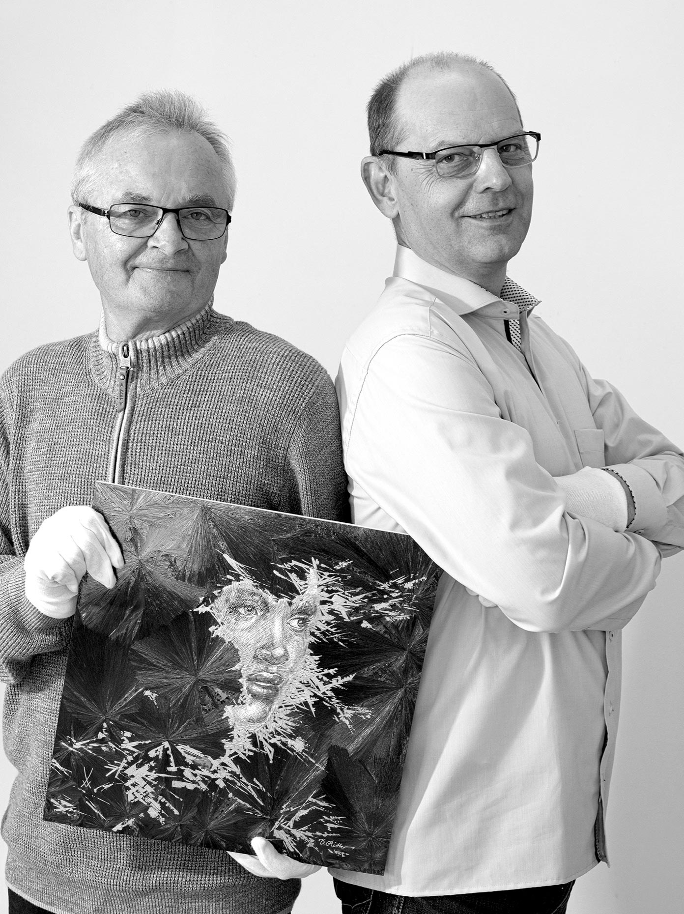 Die Leidenschaft zum Experimentieren hat zwei Meissener Künstler zusammengeführt– Horst Gottschaldt (geb. 1949) und Detlef Ritter (geb. 1961) schufen mit Ausdauer, Liebe für den Werkstoff und gegenseitigem Vertrauen neue Kristallwelten für die Manufaktur. Das Ergebnis: Eine wundervolle Symbiose von technischer Kristallglasur und handwerklich perfekter Porzellanmalerei, deren faszinierende Effekte nach mehrmonatigen Versuchsreihen im Labor entstanden sind. Nur sehr wenige Handwerker stellen sich dieser anspruchsvollen, oft von Misserfolgen begleiteten Herausforderung. Als Grundlage verwendete der Künstler Horst Gottschaldt Porzellanplatten, auf denen er unterschiedliche pastöse Mischungen aus diversen Porzellanrohstoffen, mineralogischen Oxiden und Carbonaten auftrug. Je nach Farbwunsch werden die Rohstoffe nach unterschiedlichen Rezepturen gemischt. Nach einem speziellen langen Brand bis ca. 1300°C zeigt erst das Öffnen der Ofentür das Ergebnis schließlich bleiben Kristallbildungen in Form, Größe und Vielfalt immer ein Zufallsprodukt. Hier haben sich die Kristalle sehr groß und einmalig ausgebildet und ein amorphes Bild ohne feste Ordnung und Struktur entstehen lassen.