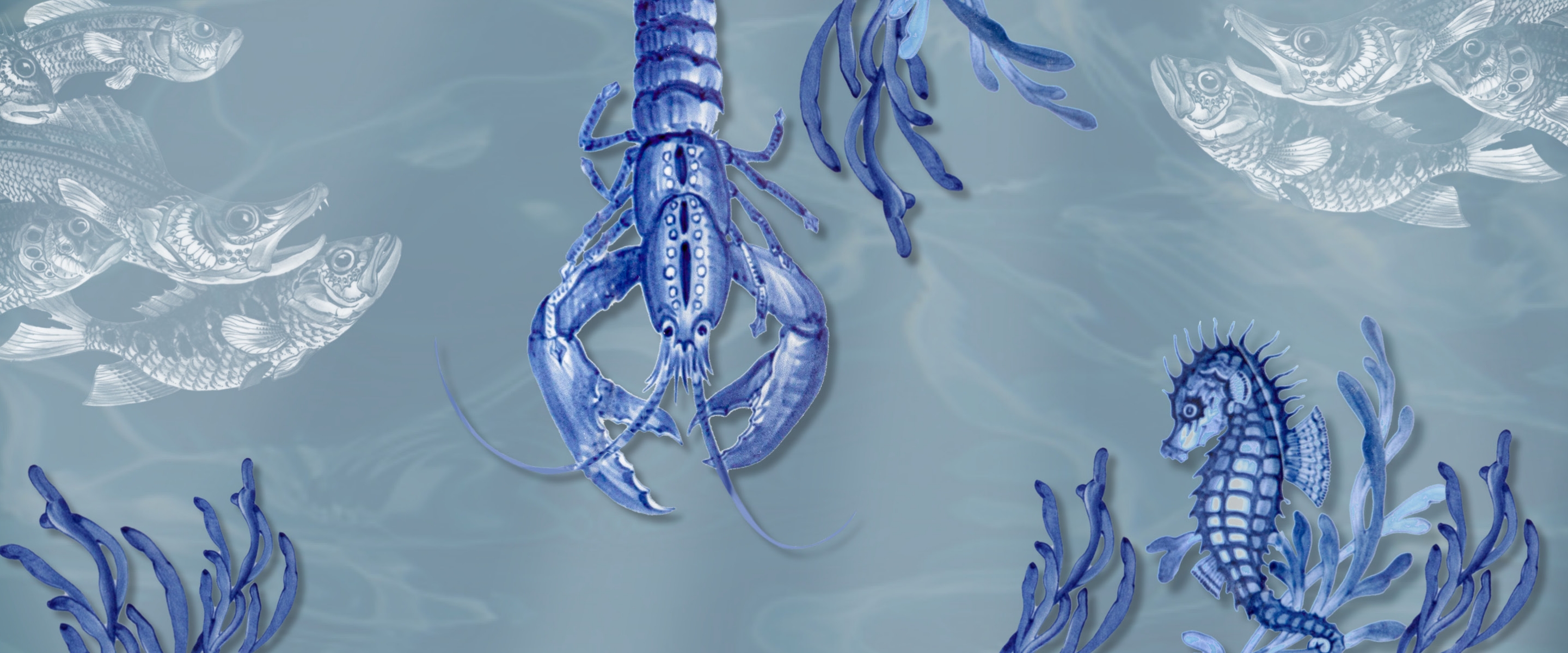 In geübten Pinselstrichen werden die bewegten Motive – Hummer, Seepferdchen, Muscheln und verschiedenste Fische – auf das noch unglasierte Porzellan appliziert und durch mehrfaches Auftragen schattiert und zum Leben erweckt. Korrekturen sind dabei nicht möglich, da die Farbe sofort in den Scherben einzieht. Im zweiten Brand erstrahlt die Malerei unter schützender Glasur dann schließlich im charakteristischen Kobaltblau. Ein gestalterischer Aufwand, der sich nicht nur ästhetisch, sondern auch ganz praktisch lohnt: alle Teile der Kollektion sind dank Unterglasurmalerei spülmaschinenfest, mikrowellengeeignet und bedenkenlos stapelbar – perfekt, um auch im alltäglichen Gebrauch und eigenen Interieur ein maritim sommerliches Ambiente einziehen zu lassen. Ob als kohärente Tafel oder im zutiefst persönlichen Mix & Match Stil.
