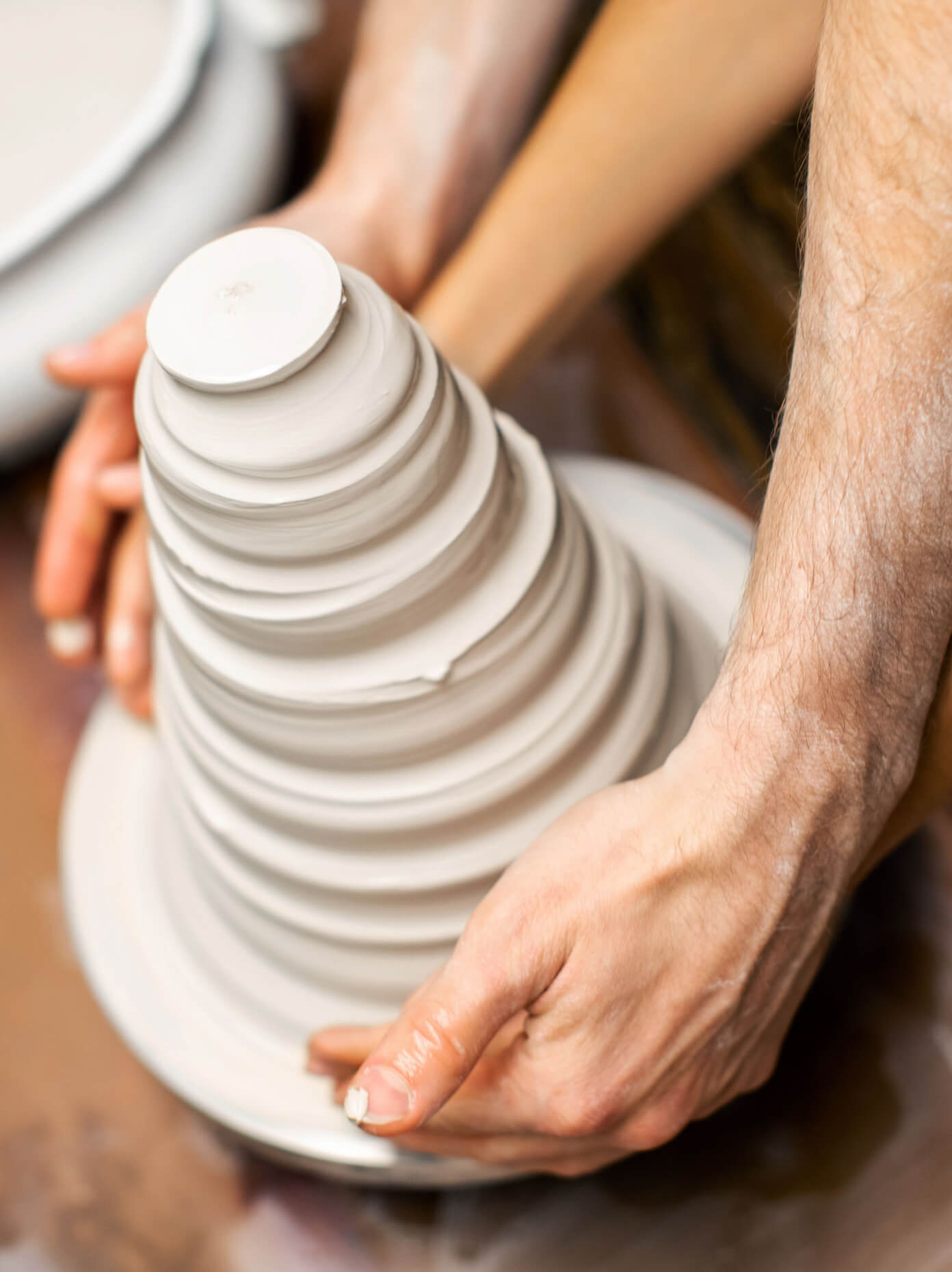 In unseren Kreativ-Workshops können Sie selbst Hand anlegen und unter fachkundiger Anleitung Ihr eigenes Porzellanstück herstellen. Erlernen Sie traditionelle Techniken, die bei der Gestaltung mit dem Werkstoff Porzellan zum Einsatz kommen - vom Garnieren mit Blüten und Blättern, dem Anbringen von Henkeln bis hin zum Formen und Modellieren einzelner Elemente. Ihre fertiggestellten Kunstwerke werden im Anschluss von uns glasiert, gebrannt und zu Ihnen nach Hause gesendet.