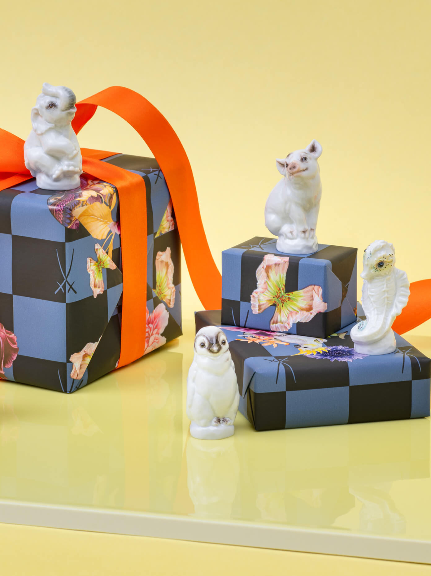 Mit der „Tierkinder“ Sammelserie präsentiert MEISSEN insgesamt fünfzehn detailreich ausgearbeitete Miniaturen, die sich von der Meissener Tradition naturalistischer Tierdarstellungen lösen. Stilisiert-verniedlichend erhalten die Tierformen in den Malerwerkstätten eine von Hand aufgetragene Staffage in zurückhaltenden Pastelltönen. Charakteristische Züge von Affe, Hase, Katze oder Hund werden dabei in feinen Pinselstrichen hervorgehoben – eine partielle Staffage, die in künstlerischen Dialog mit dem glasigen Schimmer und dem strahlenden Weiß des Meissener Porzellans tritt.