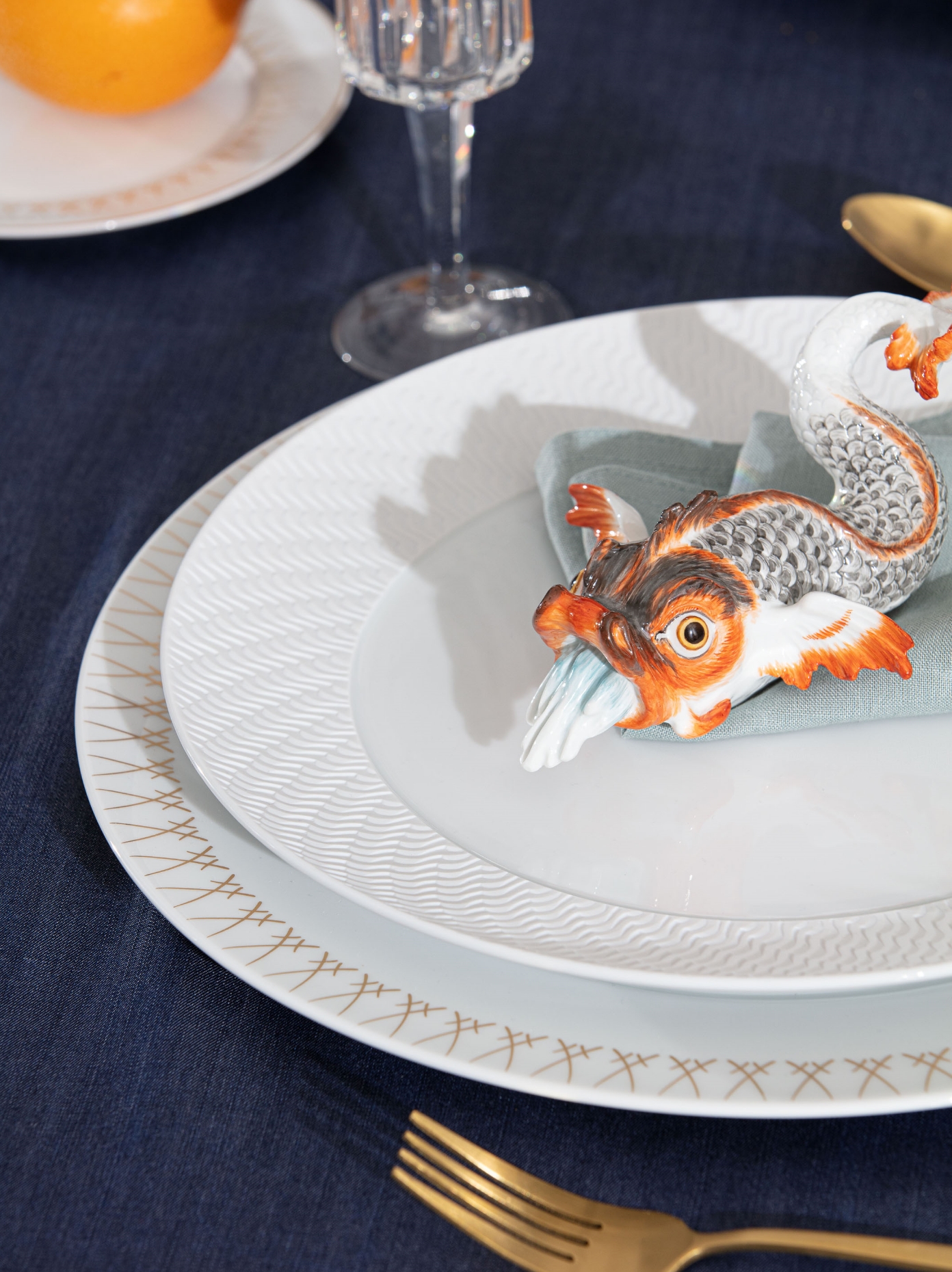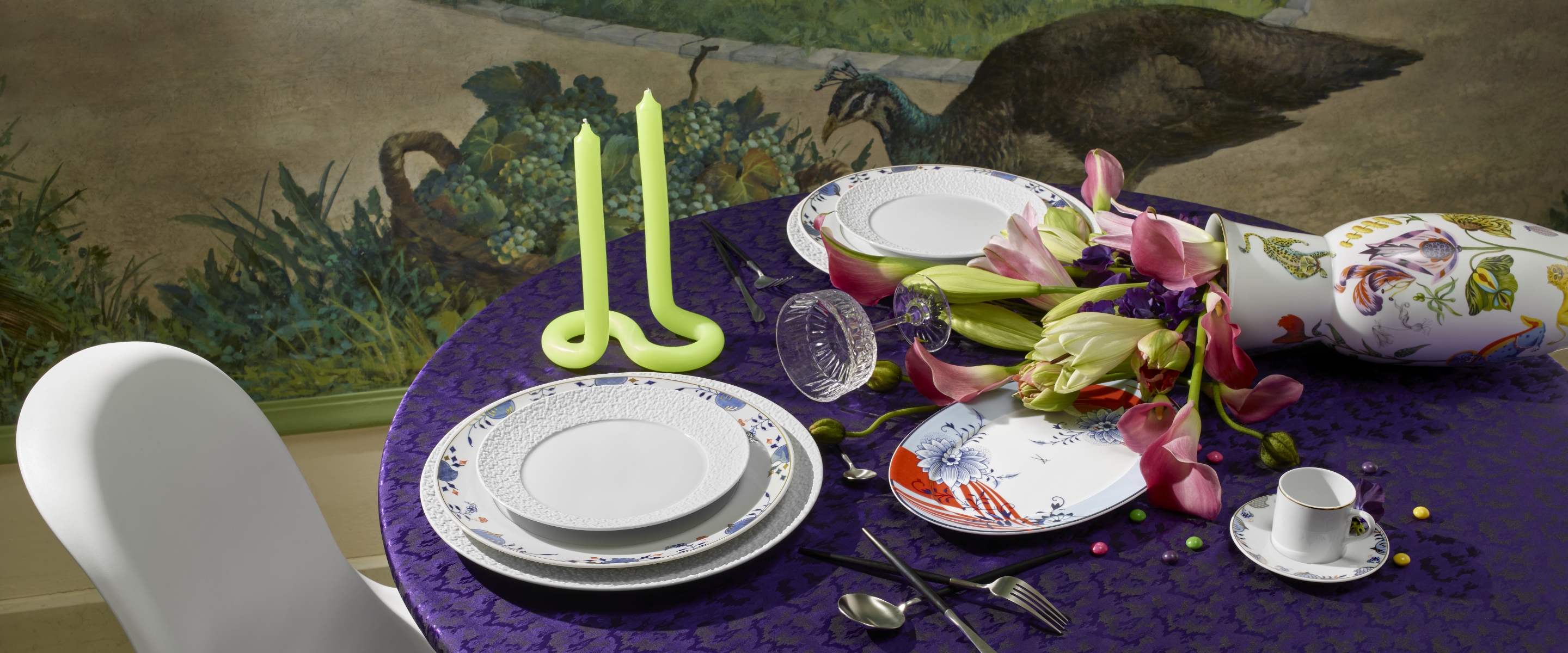 Auch Porzellane mit barocken Dekoren wie unser „Schwanenservice“ können hervorragend mit einer anderen Stilrichtung ins Hier und Jetzt geholt werden. Das Dekor „Noble Chinese“ unserer „MEISSEN COLLAGE“ Kollektion vereint die frühere fantasievolle Darstellung der europäisch geprägten Vorstellung vom Reich der Mitte mit geradlinigen Mustern und Pastelltönen. Diese Kombination ist ein absoluter Blickfang und schafft es, zwei historische Dekore in moderner Opulenz miteinander zu vereinen, wie sie sonst nie in Erscheinung getreten wären.