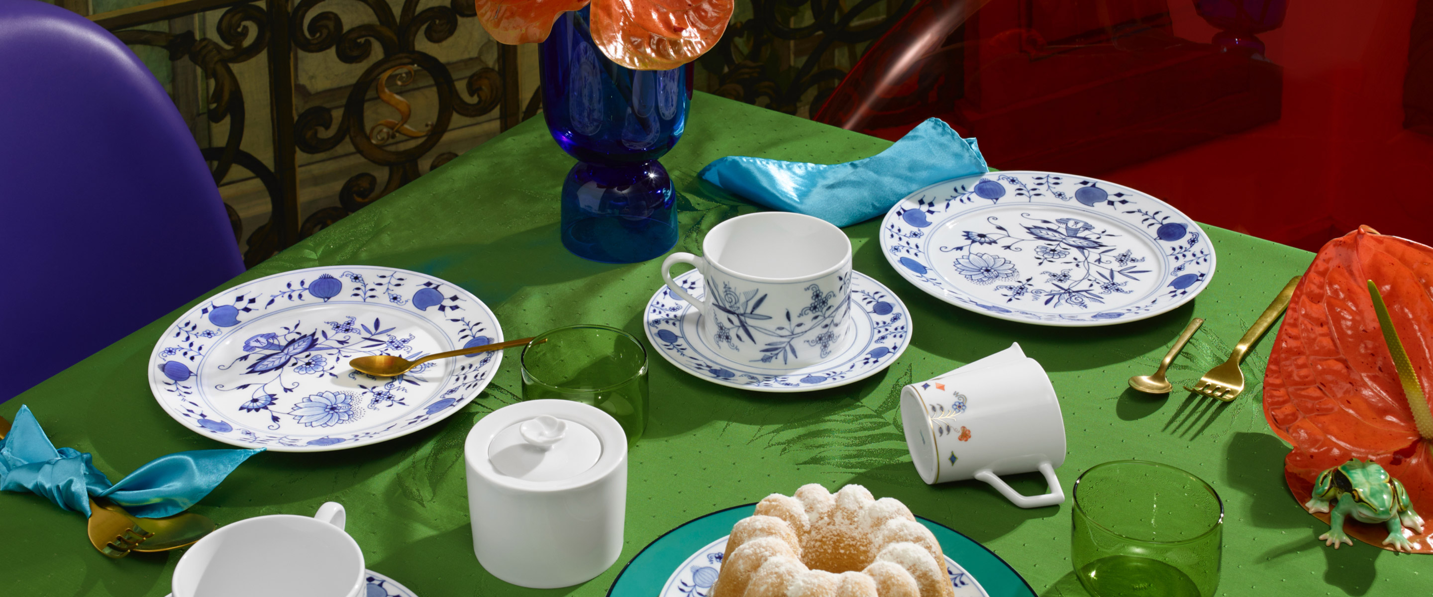 Erstmals in der Geschichte Meissens wird das historische Zwiebelmuster nun auch auf einer weiteren Serviceform umgesetzt. So erhält das berühmte Dekor auf der modernen Form „N°41“ eine völlig neue Bühne und lädt gleichzeitig zum „Mix&Match“ mit anderen Porzellanen ein.
