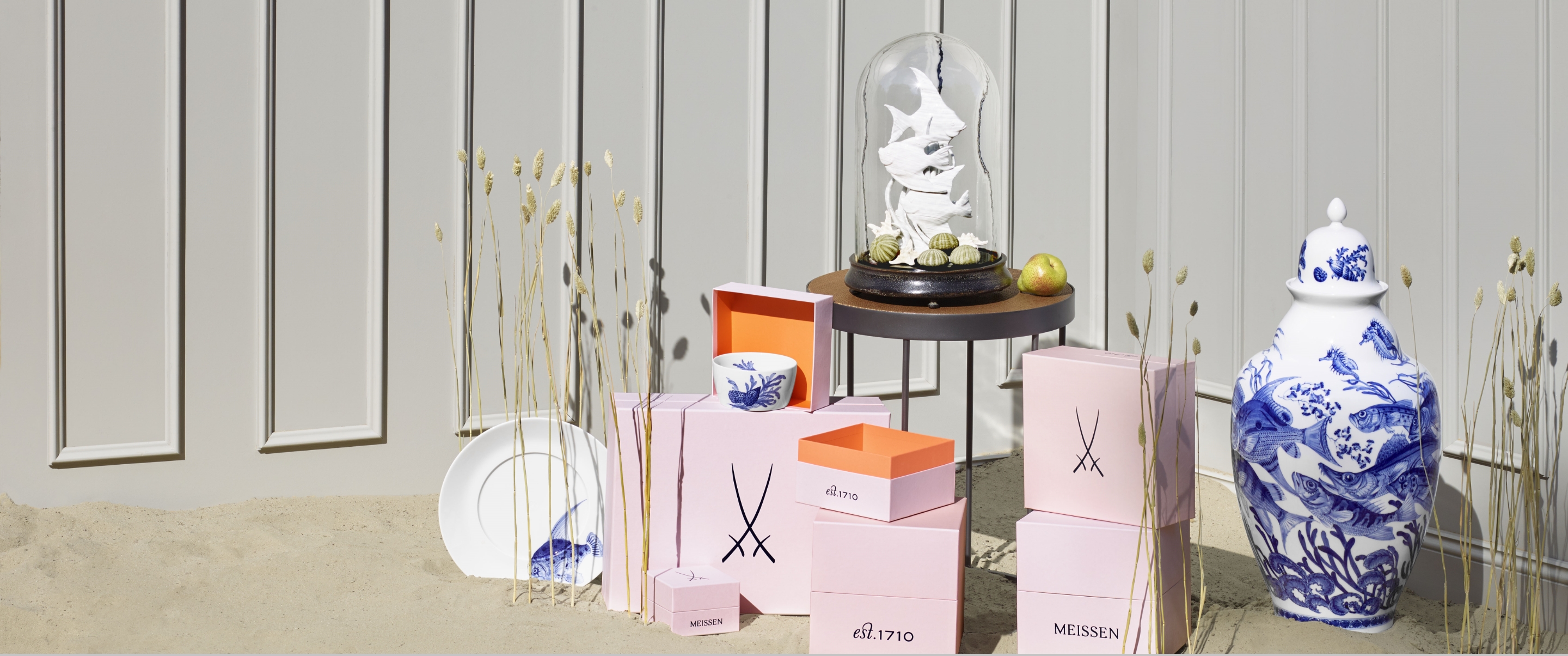 Diese betörende Wirkung auf Seele und Gemüt machen sich auch zahlreiche Meissener Dekore und Techniken zu Nutze. Eine Ästhetik des Zufalls, deren Reiz in der Reflexion des Lichts, der suggestiven Erscheinung und spektralen Tiefe liegt, befeuert die Kristallglasur-Technik, die als eine der schwierigsten Dekortechniken überhaupt gilt. Meeressehnsucht und sommerliche Leichtigkeit findet sich auch in der Kollektion „MEISSEN Blue Treasures“, mit der ein historischer Dekor auf zeitgenössischem Service Platz findet.