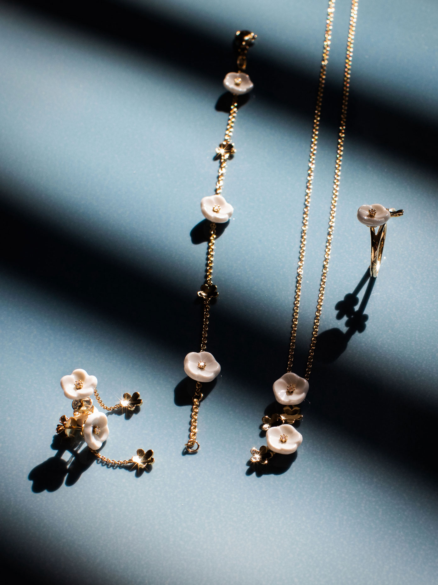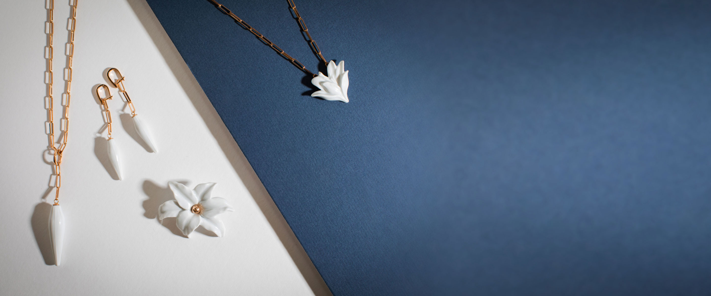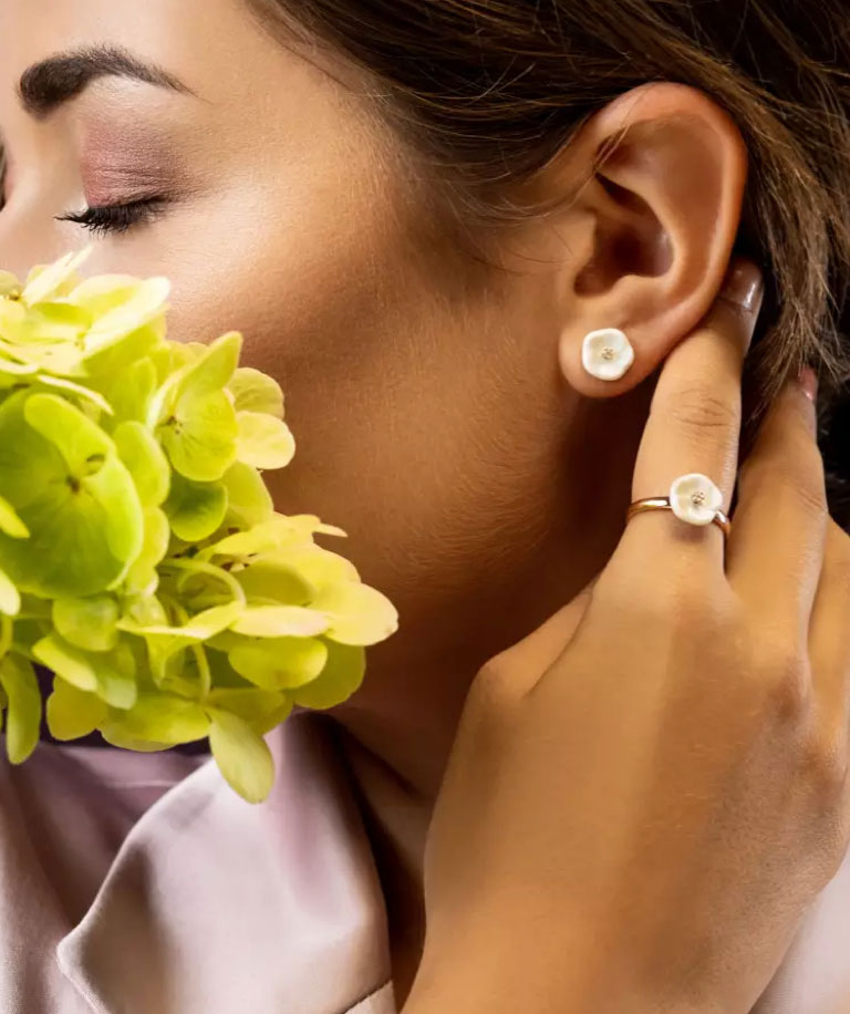 Was auch immer der Mensch erschafft, die Schönheit der Natur bleibt unübertroffen. Das dachte sich auch unsere Designerin Lena Hensel, als sie die einzigartigen Stücke der „Bloom Collection“ entwickelte. Jedes Schmuckstück beinhaltet ein anderes Teil aus Porzellan, welches die Entwicklung einer Lilie, von der ersten Knospe bis hin zur vollständig geöffneten Blütenpracht in edlem weißen Gold einfängt. Eine wundervolle Idee für wahre Schönheiten mit Charakter!