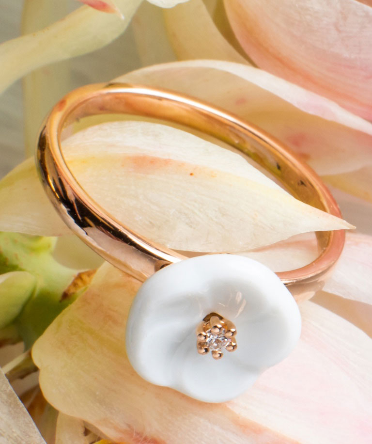 • Hinter dem perfekten Rund der Porzellanperlen steckt absolute Präzisionsarbeit. Das betrifft nicht nur die Kugelform der kleinen Kostbarkeiten selber, sondern auch deren Bemalung. Jede Perle ist mit sogenannter Lüsterfarbe überzogen, die den schimmernden Effekt der Naturperlen in einzigartiger Weise imitiert. Lüsterfarben gehören zu den ältesten Farbrezepturen der Manufaktur und sind bereits seit dem 18. Jh. in MEISSEN immer wieder auf prunkvollen Vasen und Gemälden zum Einsatz gekommen. Sie erzeugen im abschließenden Brand irisierende Metalloxidschichten, die das Licht perlmuttartig reflektieren. Damit erhalten die Meissener Porzellanperlen nicht nur eine Optik, die den Naturperlen täuschend ähnlichsieht. Der sanfte Glanz erinnert zugleich an den silbrig schimmernden Mond und damit an das Universum. Passend zu diesem Gedanken kreisen die Porzellanperlen der „Pearl Collection Pure White“ bei Halsreif, Armreif und dem Ring „Circle“ auf einer Art Umlaufbahn aus 750er Roségold.