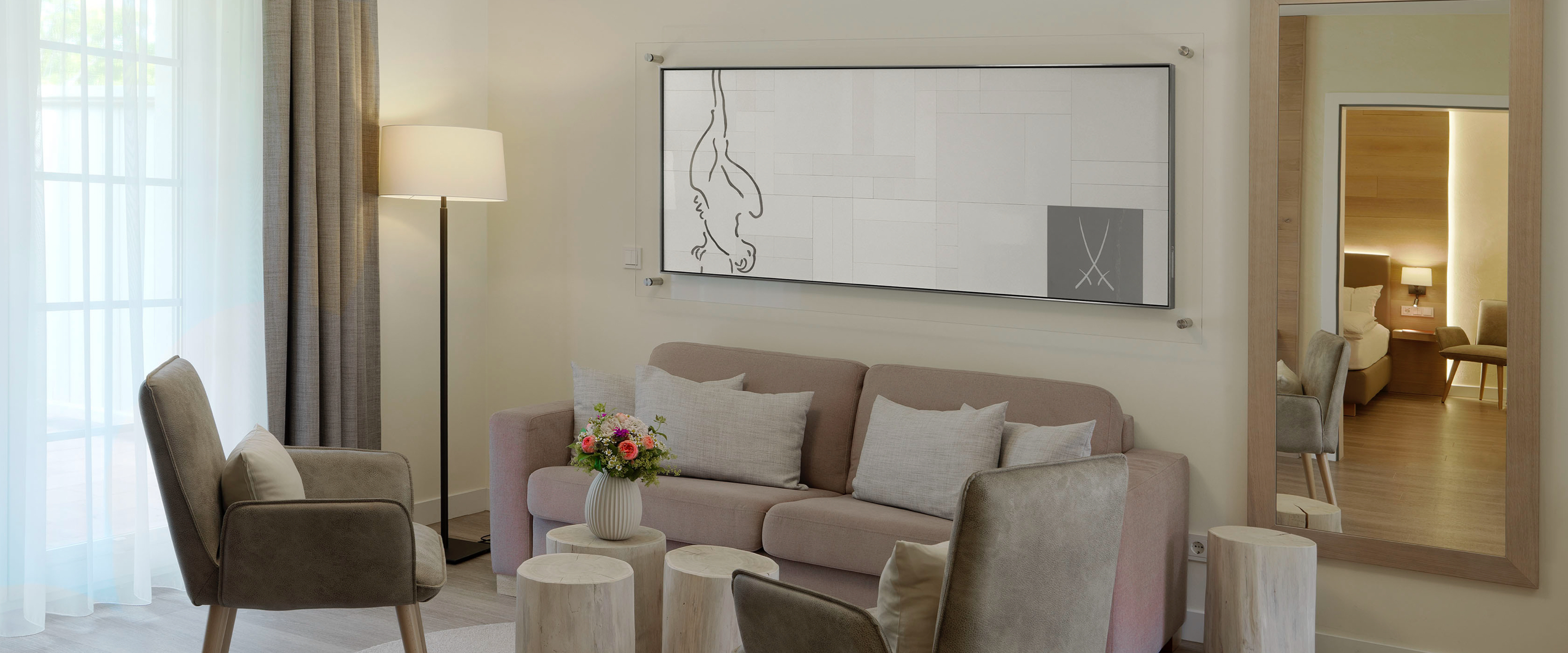 Wir von der Porzellan-Manufaktur MEISSEN teilen diese Begeisterung für das Schöne, das Wertvolle und das Außergewöhnliche, welche Ritter von Kempski mit der Betreibung des Wellnesshotels auslebt. Aus diesem Grund haben wir in gemeinschaftlicher Zusammenarbeit eine umfangreiche Kunst- und Interieur-Collection für das Naturresort & Spa Schindelbruch erschaffen, die dazu einlädt, diese Begeisterung am eigenen Leibe zu erfahren. Dazu wurden im gesamten Resort beeindruckende Porzellanfiguren aus dem frühen 18. Jahrhundert aufgestellt. Als weiteres Highlight finden sich in den exklusiven Suiten hochmoderne Wandinstallationen aus weißem Gold, welche die Essenz der Meisterwerke aufgreifen und durch wenige Striche abstrahiert darstellen. Eine exklusive Tisch- und Tafelservice für das Gourmetrestaurant, welches auf Basis der „MEISSEN® COSMOPOLITAN“- und der VITRUV-Kollektion entwickelt wurden und zu guter Letzt der erste MEISSEN-Hotelshop runden das Komplettpaket ab.