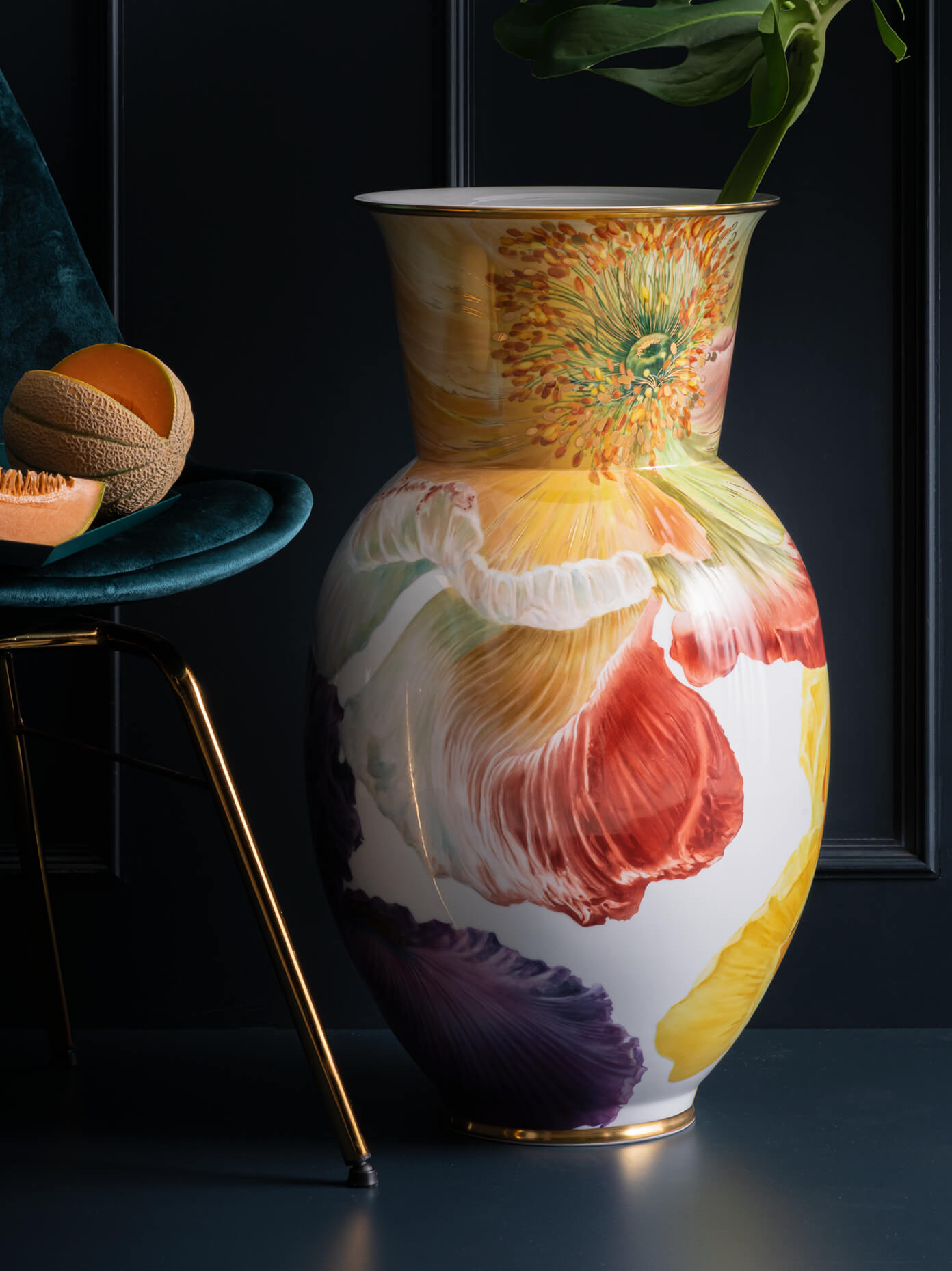 • Blumen spielen in der sommerlichen Dekoration eine zentrale Rolle, sei es durch ihre natürliche Schönheit oder durch kunstvoll gestaltete Darstellungen auf Porzellan. Unsere Vasen der „MEISSEN® Cosmopolitan Giant Bloom“ Kollektion lassen das die Pracht der Sommerblüten in den eigenen vier Wänden zum Leben erwecken. Inspiriert durch die europäische Blumenmalerei, zeigt diese Kollektion großflächige, detailreiche Darstellungen von Blüten, die jede Umgebung in eine farbenfrohe Sommerlandschaft verwandeln. Entdecken Sie beispielsweise die Vase mit Pfirsichblüte und setzen Sie Ihre kreativen Ideen für eindrucksvolle Blumenarrangements in die Tat um!