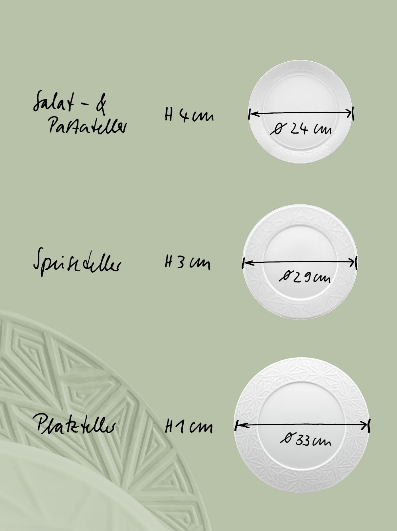 Ein Highlight Ihrer geschmückten Tafel zum Dinner-Abend ist der Platzteller. Wie es der Name schon sagt, dient er als Platzhalter für den Teller mit den Speisen des jeweiligen Gangs. Mit einem Durchmesser von 33 cm ist unser flacher „VITRUV“ Platzteller speziell dafür konzipiert und ein wunderbares dekoratives Element für Ihren Tisch. Sein puristisches Design auf der Tellerfahne mit einem Relief aus geometrischen Formen und Säulen verbreitet eine vornehme, edle Atmosphäre. Die Porzellane, die auf dem Platzteller positioniert werden, sind dabei in Design und Größe exakt auf ihn abgestimmt, sodass der Gast immer ein wundervolles Ensemble vor sich sieht. Daher bleibt der Platzteller auch bis zum Schluss des Dinners stehen und darüber hinaus bewahrt er die Tischdecke vor unerwünschten Flecken. Brotteller