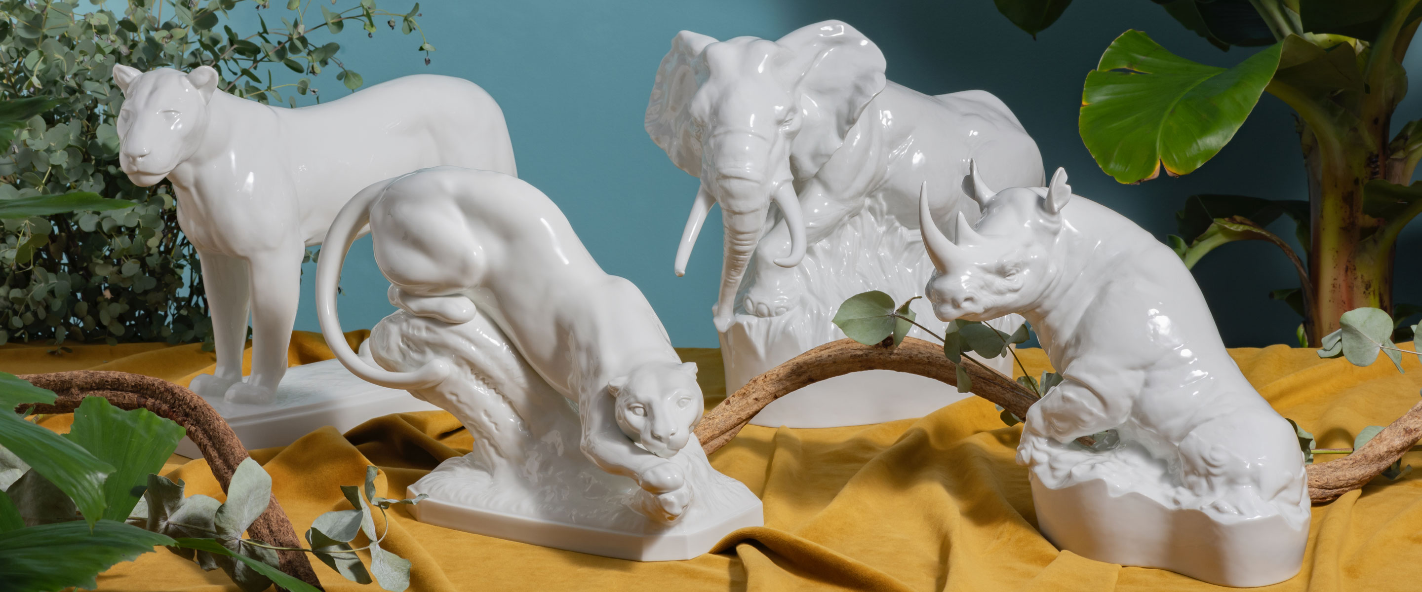 Ebenfalls fantastisch: Mit der einzigartigen Porzellan-Figuren-Kollektion Big Five hat Maximillian Hagstotz, der bereits im Alter von 16 Jahren seine Ausbildung in der Manufaktur Meissen begann und bis heute bei uns tätig ist, die erste stilistisch zusammenhängende Kollektion zu den sogenannten „Großen Fünf“ erstellt. Diese beinhaltet den afrikanischen Elefanten, das Nashorn, den Kaffernbüffel, den Leoparden und den Löwen. Dabei ließ er sich von afrikanischen Holzplastiken inspirieren und verleiht den Figuren dadurch eine kantige, fast geschnitzt wirkende Gestalt mit einer unvergleichlichen Ausdruckskraft.