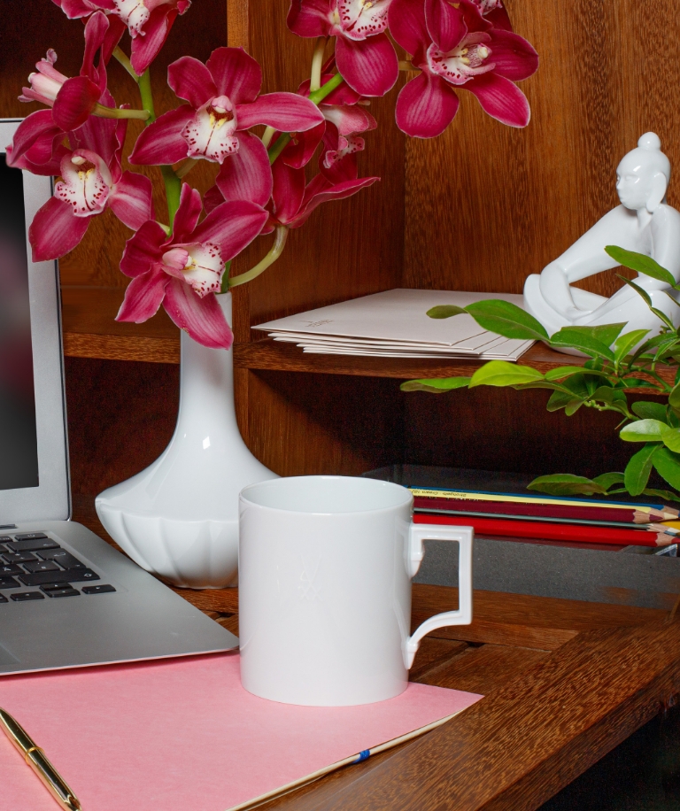 Für mehr Inspiration und Kreativität am Arbeitsplatz oder insbesondere im Homeoffice kann die Farbe die richtigen Schwingungen auslösen. Das bedeutet, Violett fördert die Balance zwischen rechter und linker Gehirnhälfte, was zu einem positiven Effekt bei Denkblockaden führen soll. Umgeben Sie sich daher mit inspirierendem Interieur und floraler Lebendigkeit in Violett. Unsere „MEISSEN® Cosmopolitan Giant Bloom“ Vase mit dem handgemalten Stiefmütterchen versprüht Leichtigkeit und Freude. Mit den passenden farbenfrohen Blumen können neue Gedanken quasi wie von selbst entstehen. Eine weitere Möglichkeit besteht darin, sich für eine neue Lieblingstasse zu entscheiden, wie unser „Henkelbecher Royal Flower“ mit dem detailreichen violetten Blumendekor oder der „Henkelbecher Ming Drache Purpur“, der mit seiner Farbgebung und seinem inspirierenden Dekor für einen zusätzlichen Impuls an Ideen sorgt.