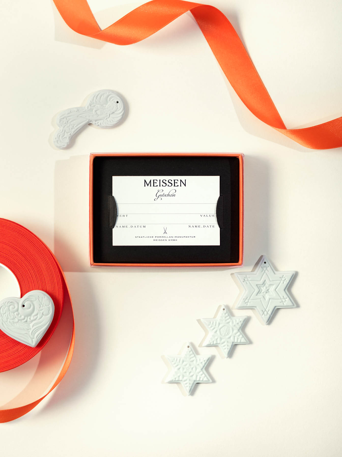 • Darüber hinaus eignen sich die Biskuit-Anhänger hervorragend als exklusives Geschenk. Ob einzeln oder in Kombination mit anderen Produkten von MEISSEN, wie den Kugeln mit dem Peryton Dekor aus der diesjährigen Weihnachtskollektion oder den Biskuit Glocken mit unterschiedlichen Reliefmotiven – sie setzen ein luxuriöses Statement. Dank ihrer flachen Beschaffenheit eignen sich die edlen Schmuckanhänger ebenso als dekoratives Detail an einem Geschenk. So sorgen Sie garantiert für Begeisterung und verleihen jedem Präsent eine persönliche, elegante Note.
