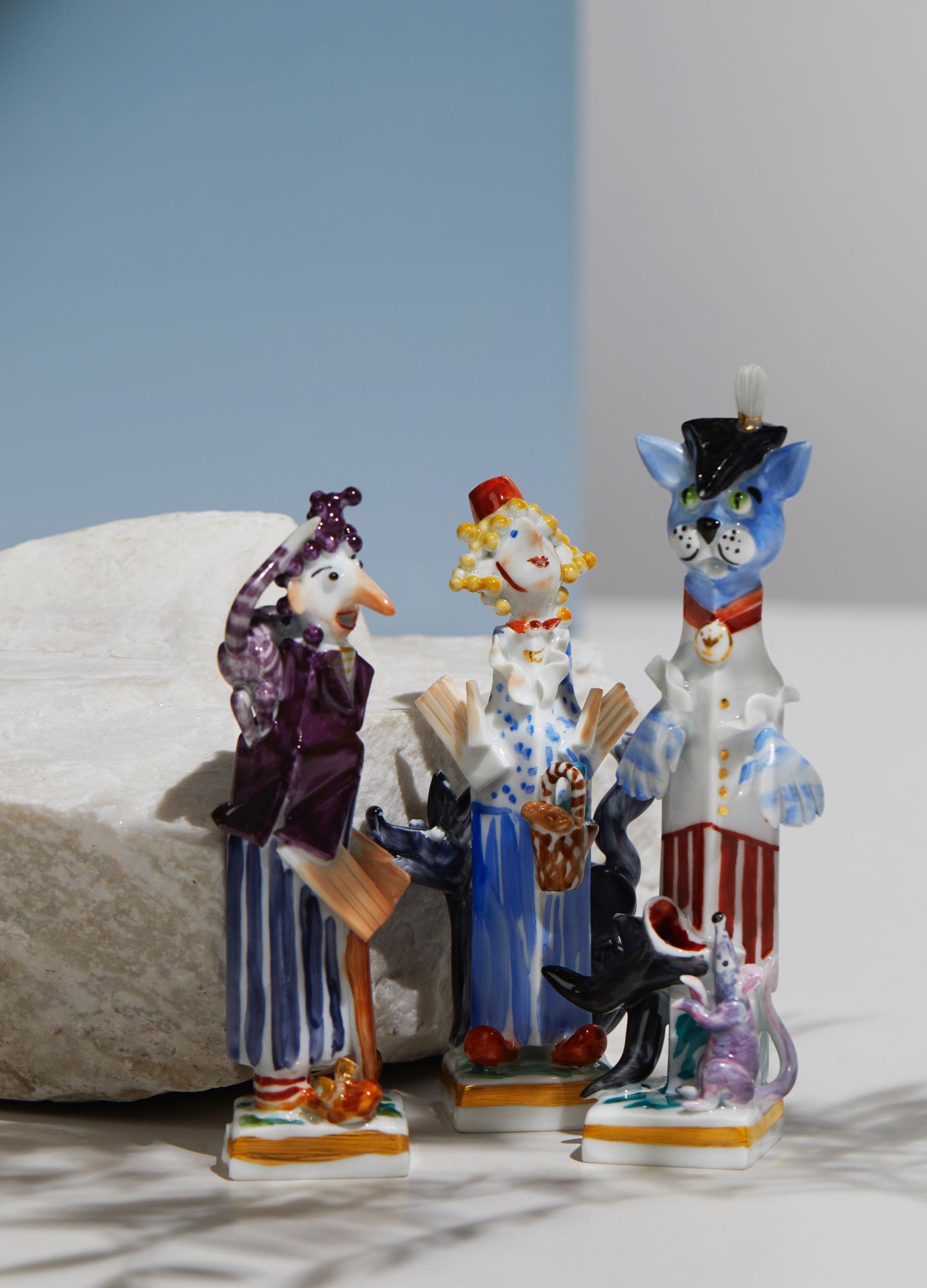 Mit der „Märchenfiguren“ Kollektion hat Peter Strang für MEISSEN eine ausdrucksstarke Interpretation der klassischen Grimm’schen Motive geschaffen. Der teils unheimliche Anklang der Geschichten weicht in der plastischen Darstellung einer heiteren, reduziert-kindlichen Formensprache, die an künstlerische Skizzen aus dem Atelier erinnert. Die Nutzung einfacher geometrischer Figuren – Kugeln für das Haar, Quader und Prismen als Rumpf oder Rechtecke als Hände – begründet dabei die markante Stilistik der Kollektion, die ihre Inspiration im Expressionismus findet. Bis ins Detail der Pinselführung, die einzelne Striche erkennen lässt, unterstreicht die sorgsame Ausarbeitung und fast kindliche Staffage den fröhlichen Charakter der Märchenfiguren.