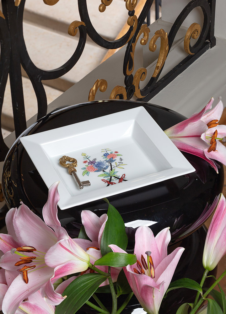 Von Schmuck, Schlüssel, Kosmetika oder auch dem Smartphone – alles findet Platz auf den insgesamt zwölf verschiedenen Vide-Poches, die mit aufwendiger Handmalerei oder grafischen Inszenierungen überzeugen. Ob das im Jahr 2021 bestimmende Blumen-Thema mit der Vide-Poche „Giant Bloom“, inspiriert von der großen Deckelvase der Limitierten Meisterwerke 2021, der berühmte „Ming-Drache“ in kräftigem Rosé oder Dekore im Handdruckverfahren wie „Swords Fantasy“ und „Indian Bird“: Die zahlreichen Dekore der neuen „The MEISSEN Vide-Poche“ Kollektion machen Lust auf das heimische Dekorieren. Werden Sie zum künstlerischen Gestalter und entdecken Sie die zahlreichen Dekorationsmöglichkeiten der Meissener Vide-Poches.