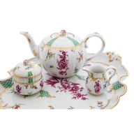 In der Zeit des Barocks sind Tee, Kaffee und Schokolade absolute Luxusgüter, die aus edlem Porzellan getrunken werden. Mit der Gründung der Manufaktur Meissen 1710 kann diese Nachfrage erstmals aus europäischer Produktion befriedigt werden. Die opulenten Porzellan Service von MEISSEN würdigen die edlen Getränke und machen ihren Genuss zu wahrhaft luxuriösen Momenten, auch heute noch. Die Meisterwerke Kollektionen bieten Service für Tee, Kaffee, Schokolade und Mokka in unterschiedlichem Umfang: das Gedeck für das Frühstück zu zweit sowie Sets für größere Gesellschaften, stets mit einem Serviertablett oder einer großen Platte, Tassen sowie mitunter kleinen Speisetellern, Milchkännchen, Zuckerdose und dem Hauptstück, der Kanne. Die Porzellan Service von MEISSEN sind ausdrucksvolle Ensemble, mit reichen Verzierungen oder Reliefs, komplettiert mit farbenprächtiger Malerei und Echtgold-Akzenten.