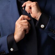 Auch im Business-Alltag verleihen Manschettenknöpfe einem Anzug oder Hemd eine persönliche Note. Dezente Varianten aus Silber oder mit schlichter Porzellanfläche unterstreichen Seriosität und Eleganz, während auffälligere Designs ein bewusst gesetztes Statement sind.