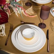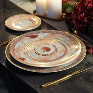 Ob in strahlendem Weiß oder mit leuchtenden Farben dekoriert – das Sortiment bietet eine breite Vielfalt an Gestaltungsmöglichkeiten. Die Größen variieren je nach Funktion: von kompakten Tellern mit 14 cm Durchmesser bis hin zu großzügigen 34 cm – perfekt etwa als Platzteller oder für opulente Gänge. Neben der Formgebung prägen die Veredelungen den Charakter jedes Modells: feine Gold- oder Silberakzente, reliefierte Oberflächen und handgemalte Dekore machen viele Stücke zu kleinen Kunstwerken.