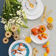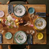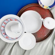 Dabei begegnen sich klassische Stilrichtungen und moderne Formensprachen auf Augenhöhe – ob mit zarten Blütenmalereien, abstrahierten Linien oder grafischen Elementen. Manche Teller entstehen in aufwendiger Handmalerei, andere zeichnen sich durch bewusst reduzierte Gestaltung aus – immer jedoch mit höchstem gestalterischem Anspruch.