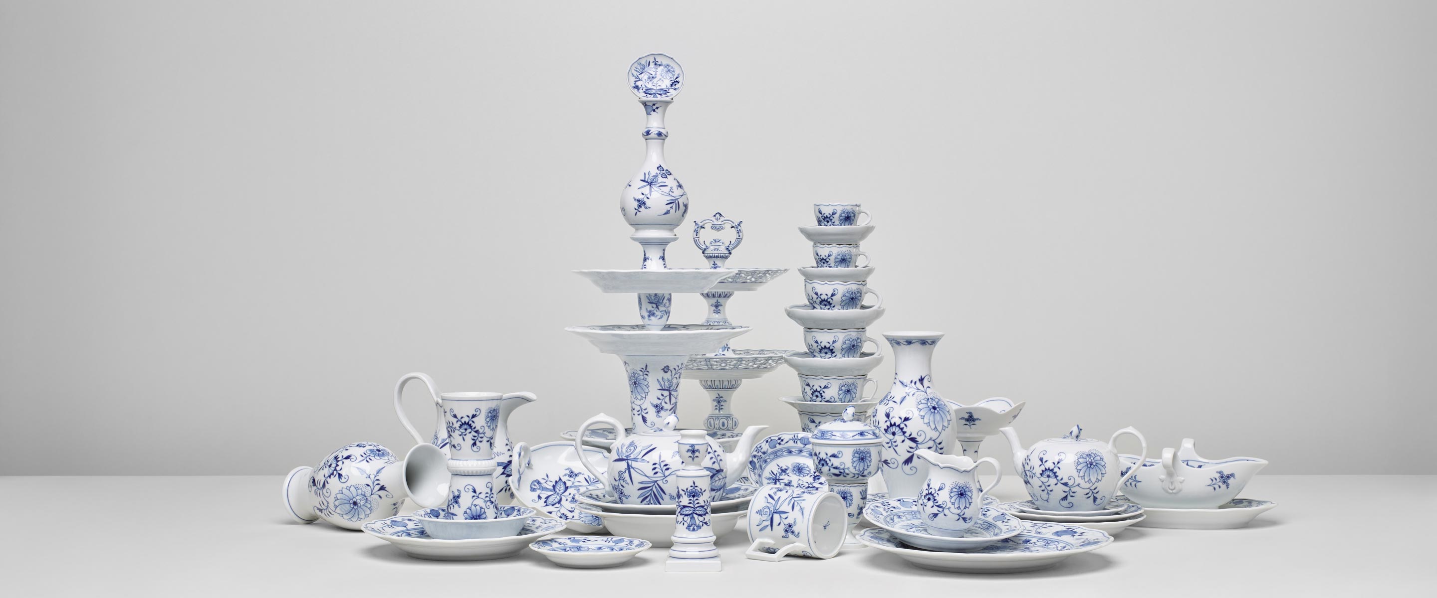 Zwiebelmuster StyleIm Jahr 2004 erfährt das historische "Zwiebelmuster" eine zeitgemäße Überarbeitung. Anstatt der gleichmäßig vollflächigen Bemalung wird die Chrysanthemenblüte asymmetrisch auf dem Tellerspiegel angeordnet. Der Bambusstamm mit Ranken, zarten Blüten und Blättern sowie das Doppelblatt vom klassischen Dekor sind geblieben. Hingegen sind die Früchte vom Tellerrand verschwunden. Der Dekor erscheint aufgelockert und das strahlende Weiß des Porzellans wird stärker betont. Auch auf der Tasse finden sich die Chrysantheme und der Bambusstamm als eine reduzierte, weniger kompakte Bemalung wieder – Umgeben von zarten Ranken scheint der Bambus nahezu aus dieser herauszuwachsen. Die Früchte sind auch hier verschwunden. Nur eine Zwiebel auf der Untertasse erinnert noch an ihre Vorgänger.
