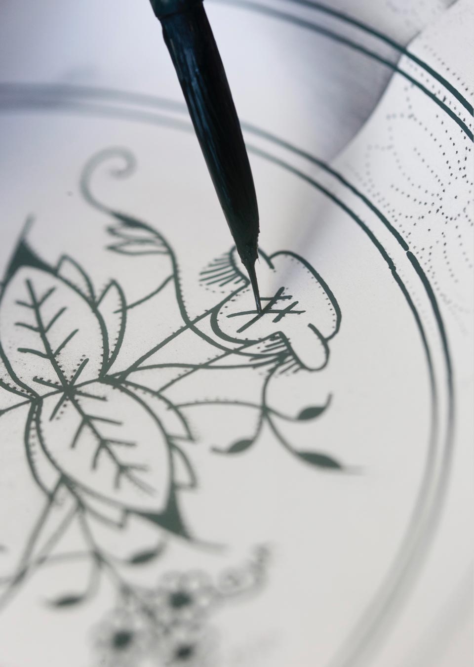EmbossingDesigned and cast in a great number of individual pieces, Meissen figures and sculptures are assembled by the embossers. They use slurry, a liquid porcelain paste, a great deal of skill, and the right mix of pressure and intuition to assemble the individual pieces. Smaller decorative elements such as leaves, flowers, and scallops are formed by hand using a wooden mould and then attached to the figurine. In the final stage of this step, using a modelling stick and other tools, they flesh out details such as individual ringlets or a figure’s facial expression, and also retouch all of the seams. Embossers bring out a piece’s finer aspects and make the final touches in accordance with the modeller’s vision. This requires a great deal of artistic talent, which Meissen embossers learn during their three and a half years of professional training.