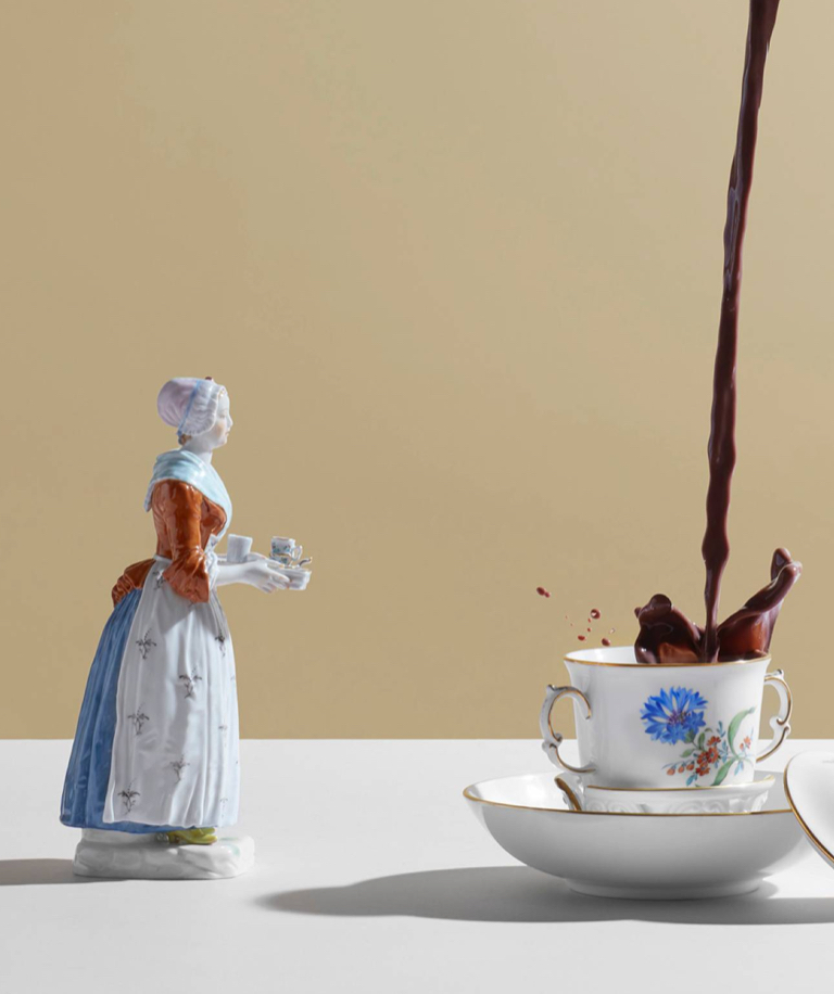 We from the porcelain manufactory MEISSEN also celebrate the delicious pleasure of the senses on every occasion. Thus, the collaboration with the Swiss chocolate manufacturer Lindt shines in full glory, on the occasion of pure joie de vivre and unrestricted enjoyment. The exclusive special Lindt x MEISSEN edition of HOCHFEIN pralinés and the matching unique porcelain series present a fascinating, exotic décor consisting of golden cocoa fruits, lush feather poppy blossoms, delicate iris flowers and juicy figs. Here, the "brown gold of the Aztecs" and the "white gold of the Saxons" unite in harmony and inspire our wildest chocolate dreams.