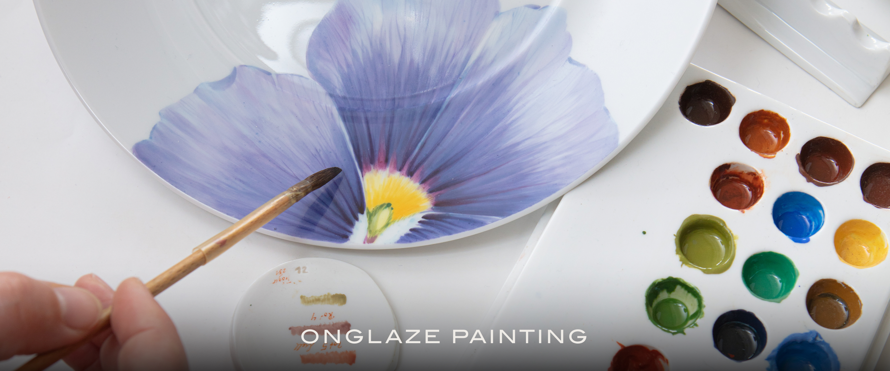 Onglaze painting is carried out in the next step on the smoothly fired, melted-out glaze. Since the firing temperatures from this step on are only up to 900 °C, a much wider range of colors opens up and creates the greatest possible artistic freedom in painting. If gold colors or further details are to be added, the first onglaze painting must sometimes even be followed by a second firing. Thus, at the end, when all types of porcelain painting have been used, the finished porcelain piece has found its way into the flames of the kiln up to five times.