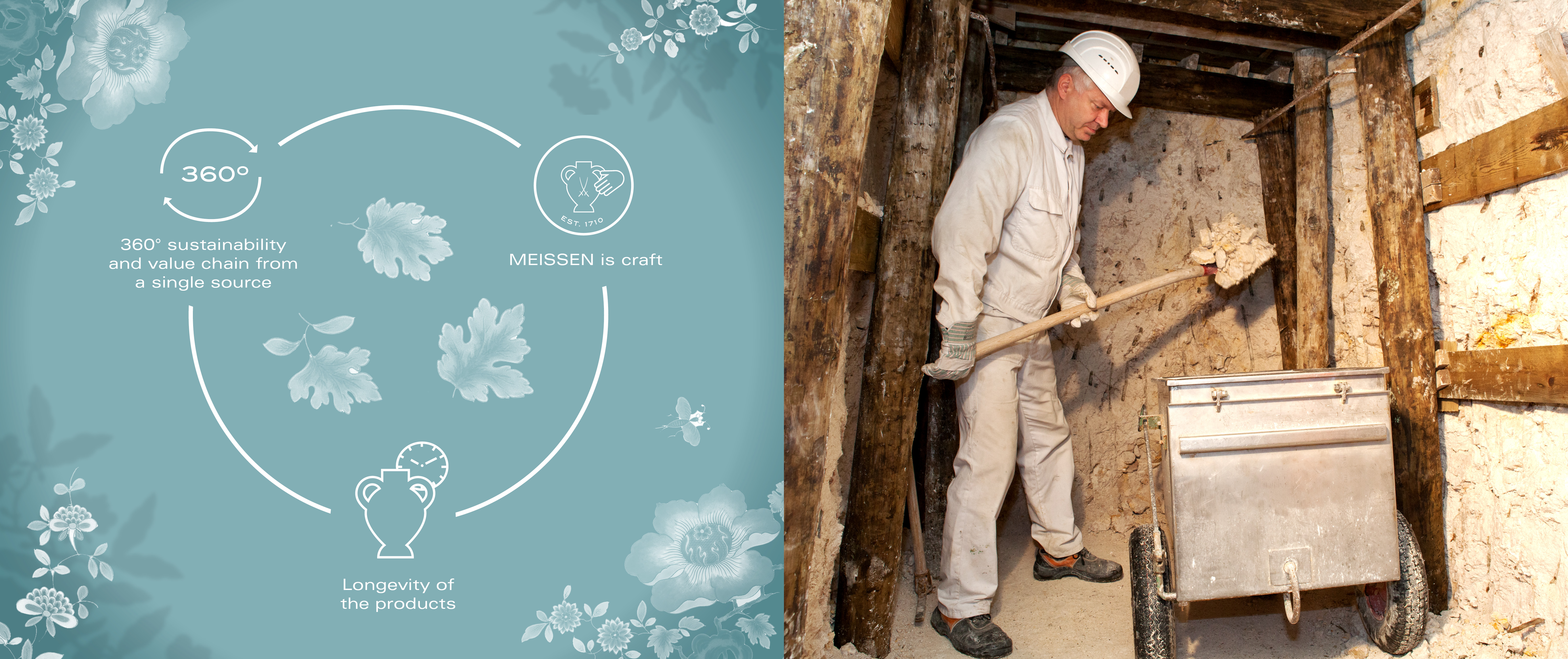 “Choose Meissen porcelain for sustainable gift-giving: made with natural materials at a single site, from mine to mug, following Germany’s standards for environmental and social responsibility.”