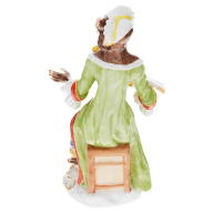 Designed in the mid-18th century by master modeller Johann Joachim Kaendler, the “Monkey Chapel” is an outstanding example of Meissen Baroque. The subject of singerie - depictions of monkeys imitating human behavior, often in a parodic manner - was very popular at the time, particularly in France. Entire rooms were decorated with these comical scenes, from the walls to the upholstery and carpets to the porcelain. Drawings by the famous French singerie painter Christophe Huet served as a model for this porcelain ensemble: monkey figures decorated in the Rococo style, skilfully assembled by hand and painted in great detail. The figurines were quickly returned to Paris from the manufactory's kilns. Madame de Pompadour, mistress of King Louis XV, acquired one of the very first “monkey chapels” in 1753.