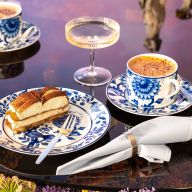 Choose your coffee cup from a variety of shapes that reflect both traditional and contemporary styles. One of the best known is the B-shape, which was designed between 184 and 1855 and impresses with its sleek lines and harmonious proportions. The Swan Handle cup, inspired by the famous 18th century swan service, is characterized by its artfully shaped handle that resembles a swan's neck, embodying elegance and sophistication. The Wellenspiel series, one of the more modern creations of the Meissen porcelain manufactory, combines dynamic wave movements with simple shapes and pays homage to the flowing movements of nature. The Neuer Ausschnitt shape, characterized by clear lines and a striking handle, is also one of the stylish classics.