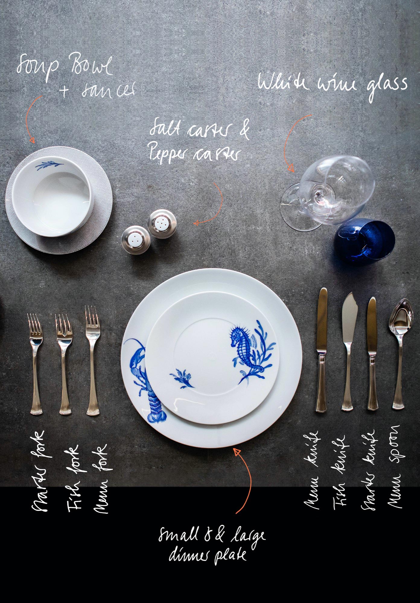Table etiquette for fish dishesSummer is the season for light fish dishes and seafood menus. As with all table settings, there are special rules to consider when setting the table for fish, crab or seafood, with porcelain tableware requiring dedicated foresight and consideration. -