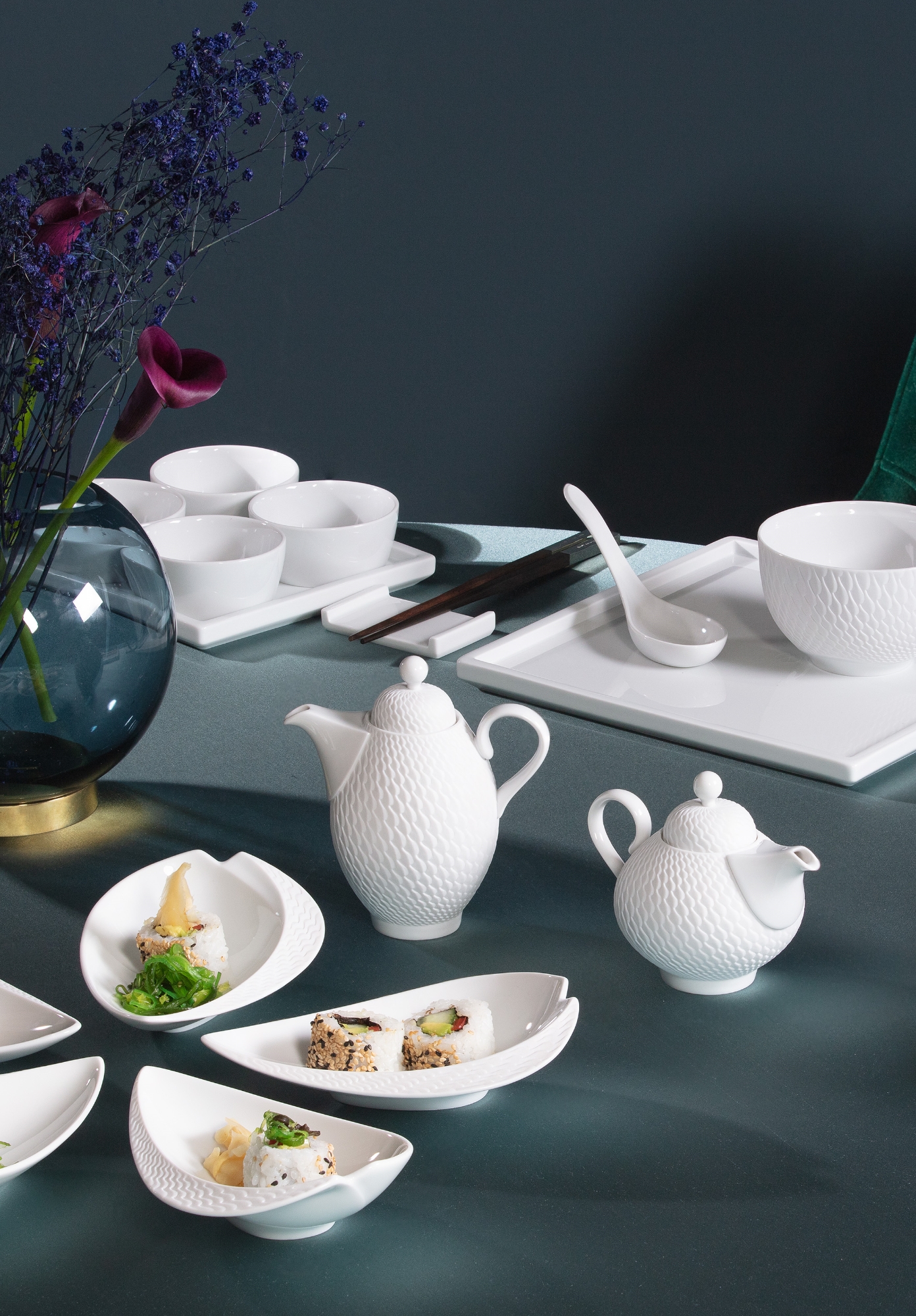 Asia CollectionThe perfect service for lovers of the Asian cuisine with a sweeping waves relief for a maritime flair. -
