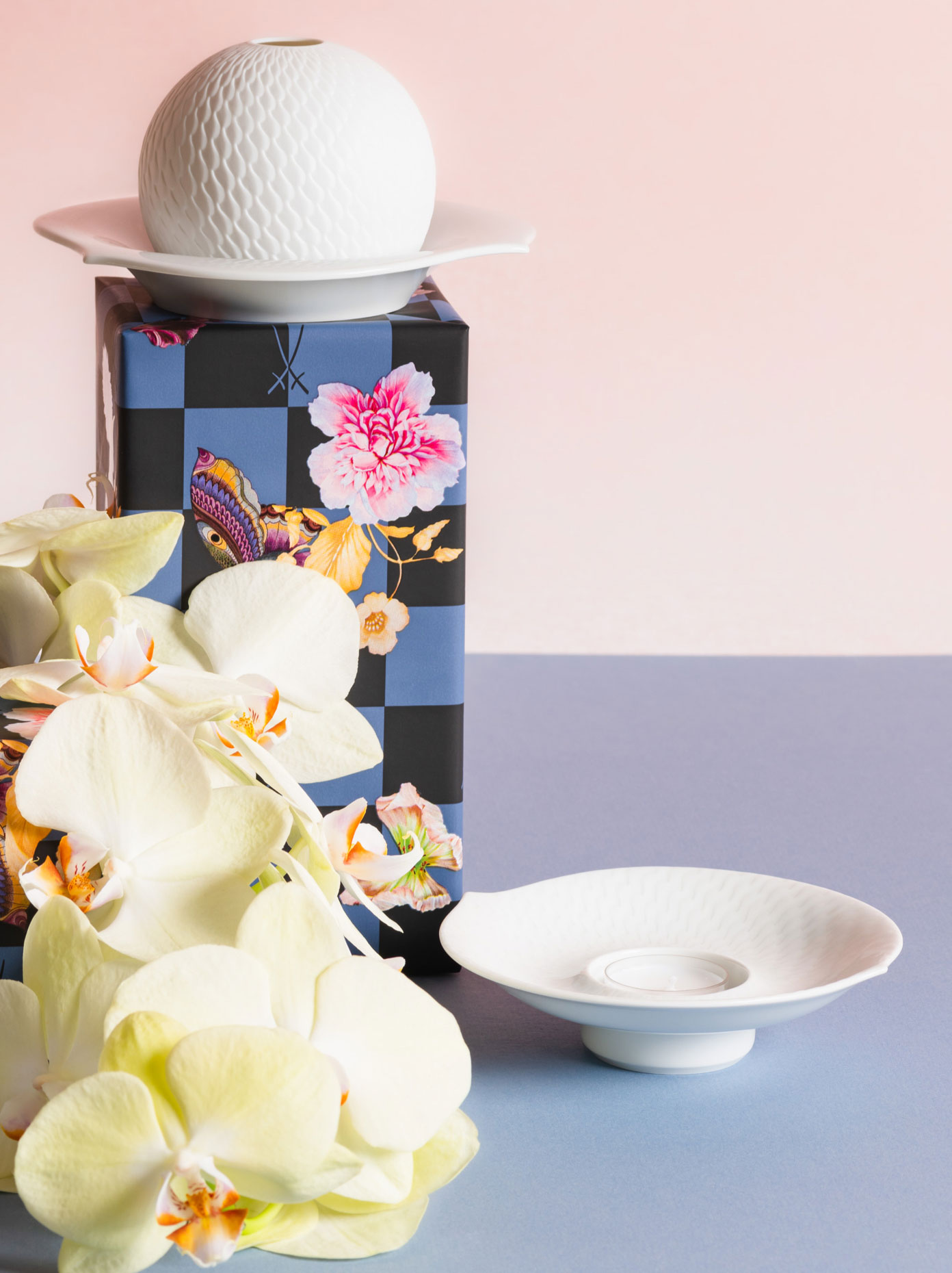 Especially in the autumnal evenings, soft lights can wrap us in an aura of warmth and security. So you can create a small sea of lights with discreet light sources on the tables and shelves, which will bathe your room in a cozy ambience. So turn off the festive lighting and use our table lamp from the "MEISSEN® Cosmopolitan" series, for example. With its clear lines and decorative sweeps, this table lamp is inspired by the design language of modern hotels and thus exudes a high degree of elegance. But even with small lights, such as with the "Royal Blossom“ table light or the dish with tealight from the "Wave Play Relief" collection, you can create a magical atmosphere that will draw you into the spell of autumn.