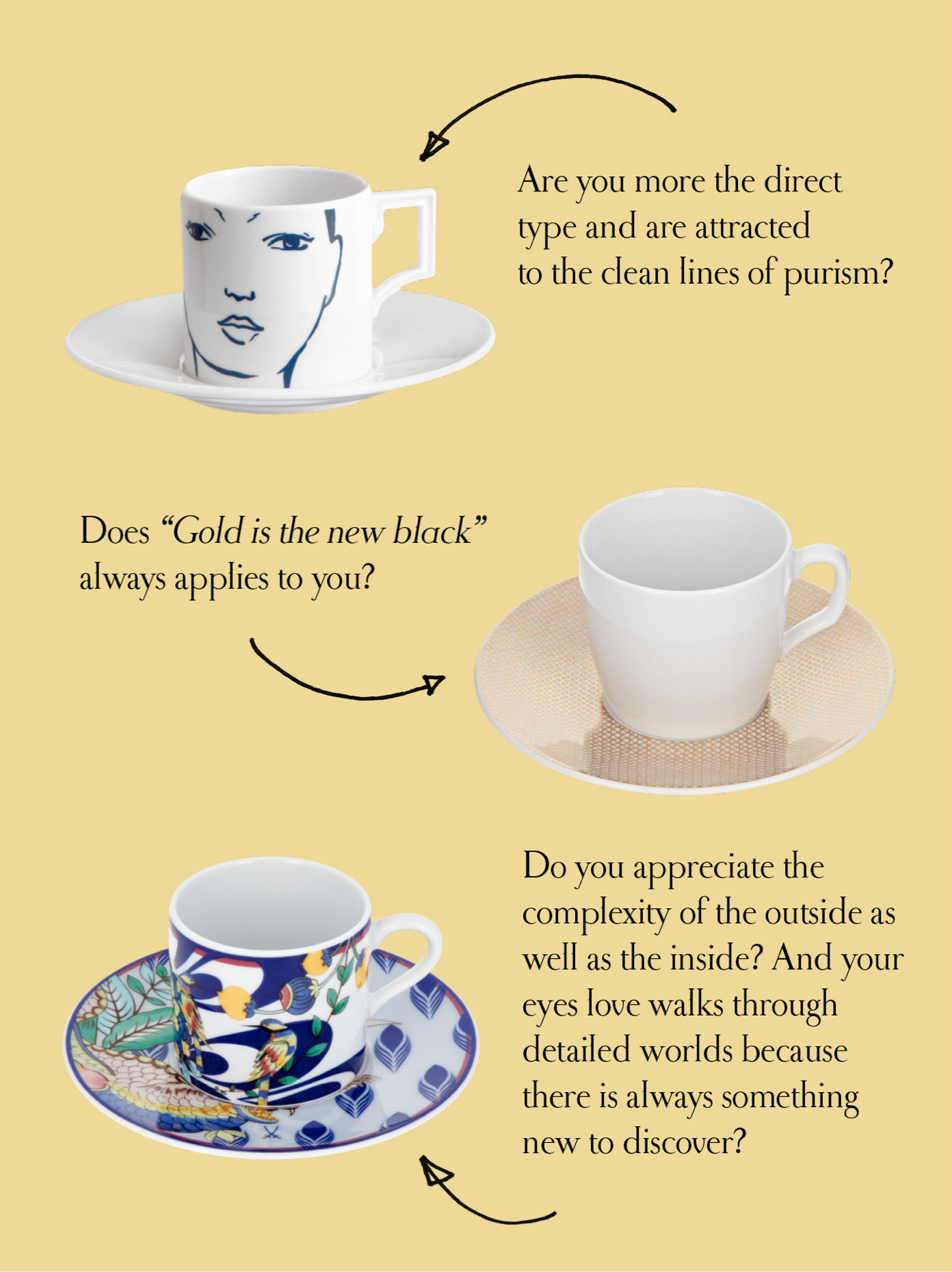It is, of course, up to your own personal preference how you want to enjoy your espresso. Perhaps you choose a cup that reveals its complexity, much like its caffeinated time-out, more at second glance, but always at first sip. Or you may wish to explicitly externalize the multifaceted nature of espresso in your choice of cup as well. Let's dive together into our world of espresso cups and find the "Perfect Match" for you and your espresso.
