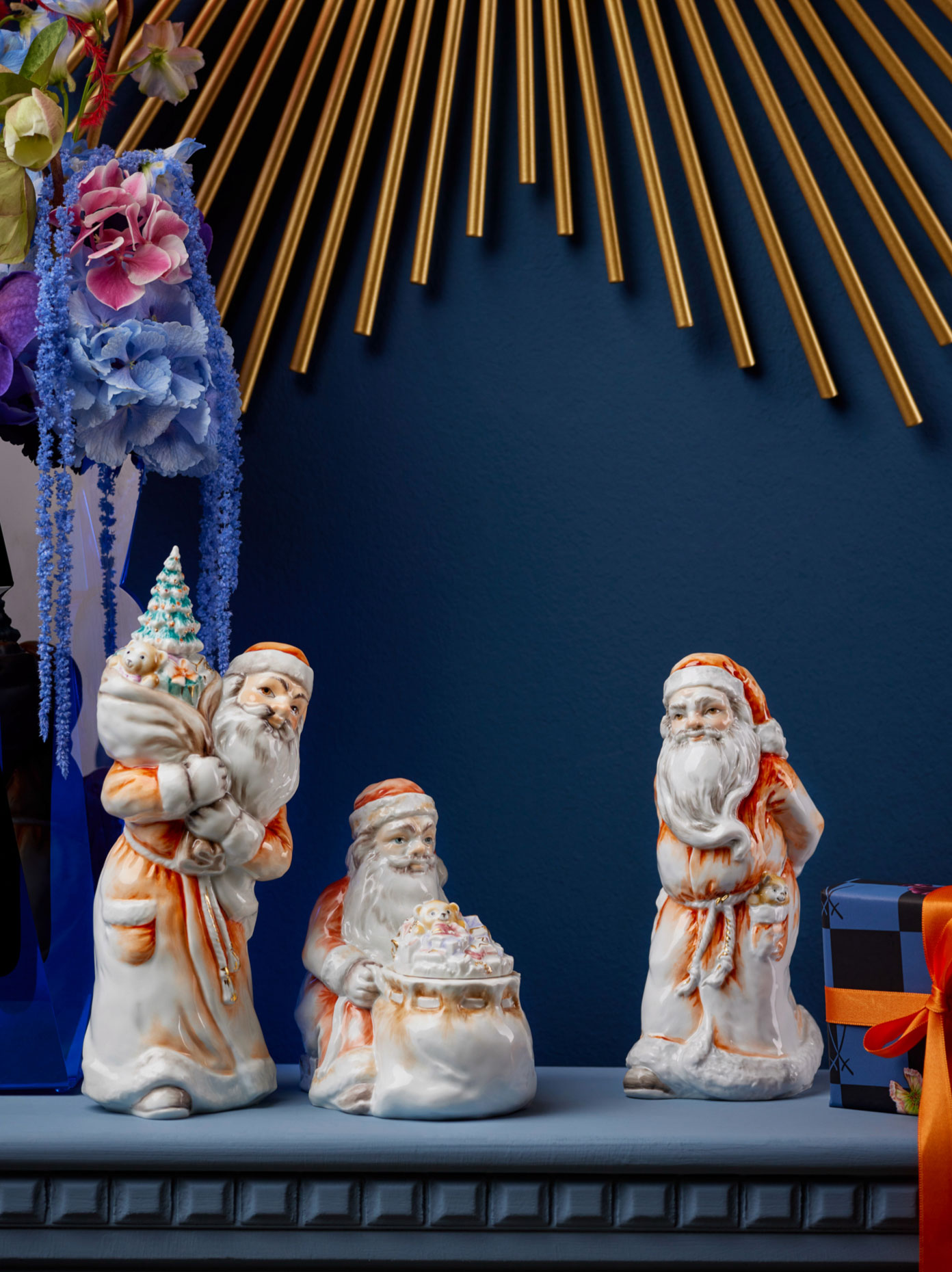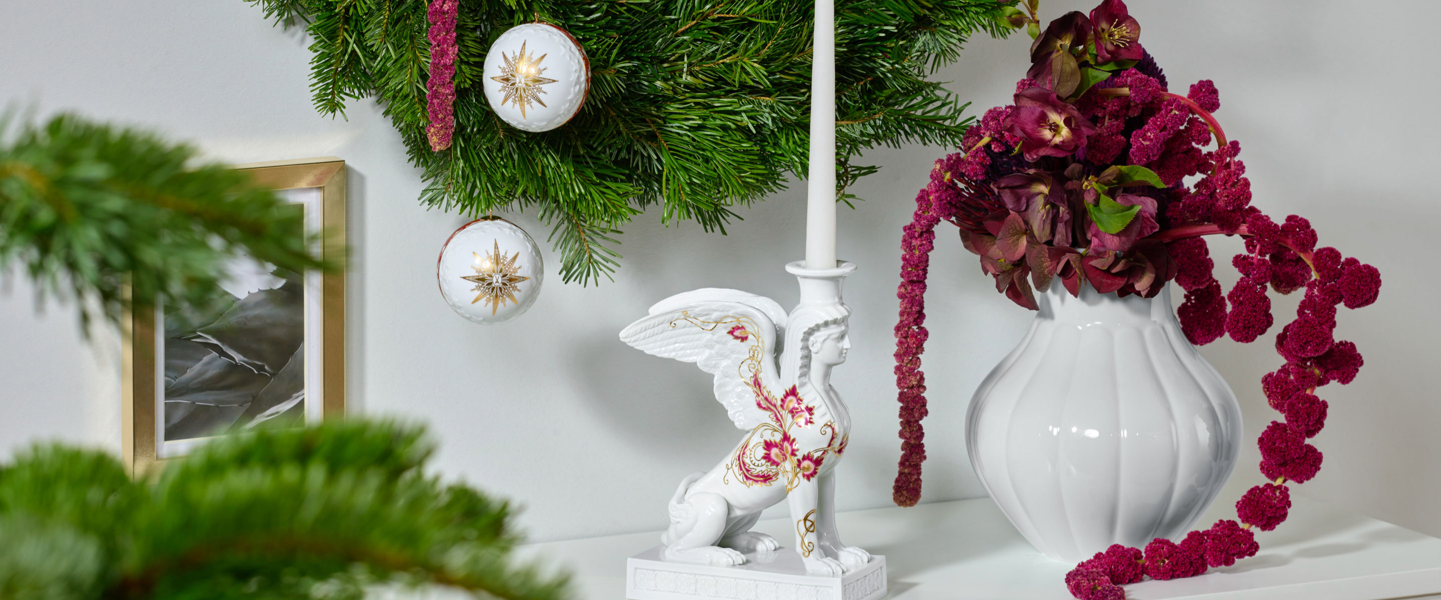 • Its gaze wandered over the fireplace with its magnificent white candlesticks and Santa Claus figurines to the living room table - the magnificent Advent wreath with its now 4 candles of different sizes impressed the curious creature so much that it almost overlooked the mug with the Christmas Star. That's... that mug belongs to mom. She painted it herself when the whole family visited the House MEISSEN together.
