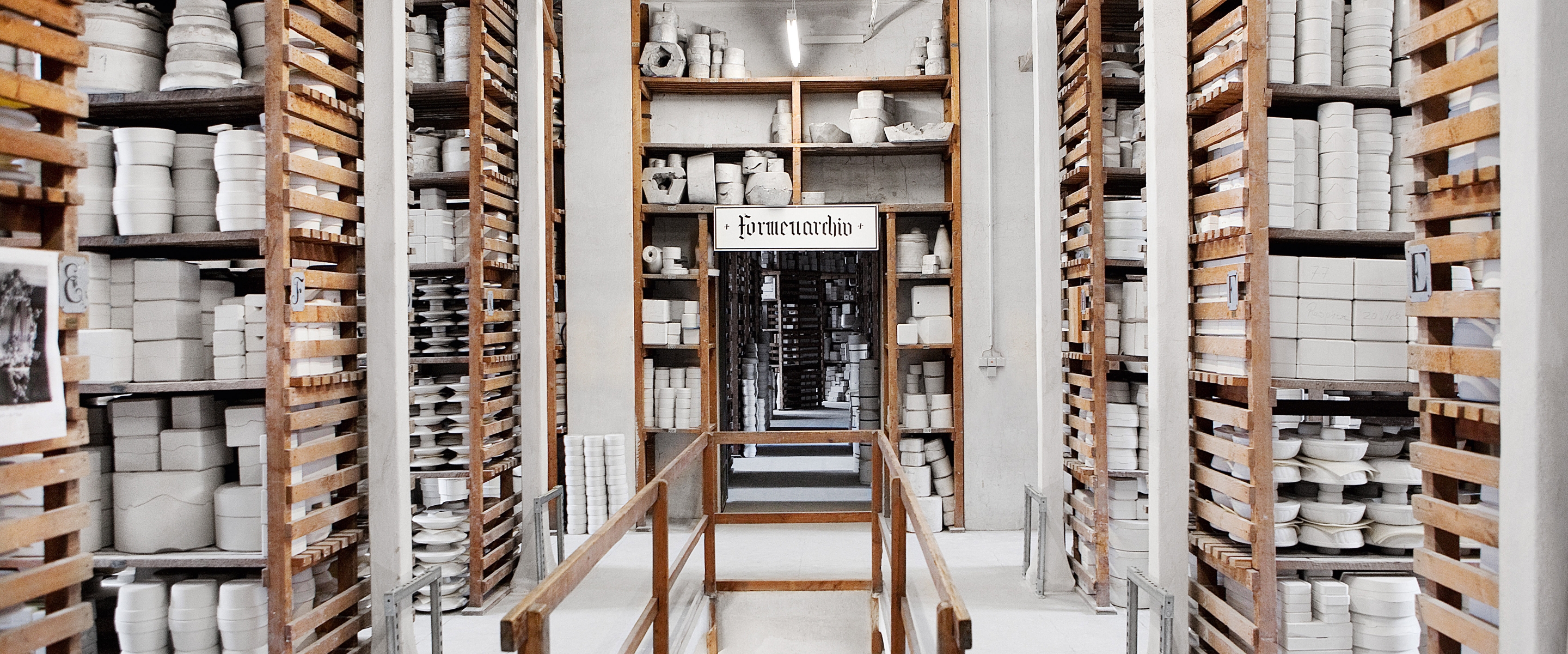 Full of anticipation and with a bit of awe, we whisk you away to what is probably one of the most sacred places in our manufactory – the imposing mould archive. With the smell of old wood and cool plaster in our noses, we enter the walls that house more than 300 years of manufacturing history and are full of unique works by famous artists.