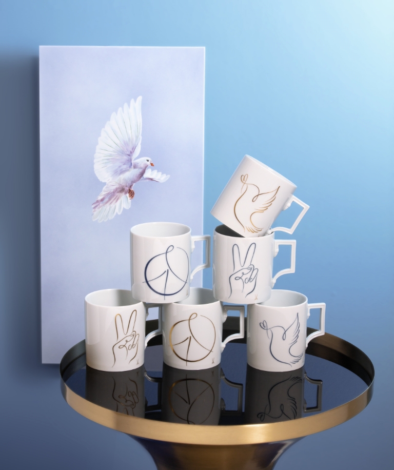 To send a message of solidarity and peace and to make a small contribution to supporting the people in Ukraine, our talented drawing students have reinterpreted the peace symbols and immortalised them on our iconic mug. Three different peace designs in blue or gold now adorn our popular mugs. They are a sign that we as MEISSEN stand together with you for peace and carry around the world a symbol of hope that unites us all. Our extraordinary wall-painting "Peace Dove" has also been reinterpreted and is part of our fundraising campaign.
