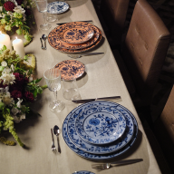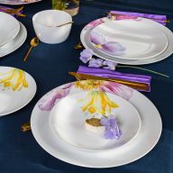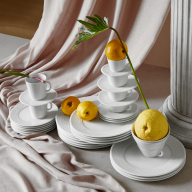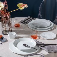 A coherent service guides the eye from first course to last. Layer your soup plates with dinner plates to define each place. For formal occasions rest the setting on a broad charger plate so the composition feels anchored. On the side keep a bread plate ready for a slice or a roll and present the final course on a refined dessert plate. If the menu includes pasta choose a complementary shape from the pasta plate selection so the table flows naturally. For serving and sharing add a sculptural platter or combine textures with bowls. To complete the setting in one-step, explore curated tableware and add thoughtful details from tableware accessories.
