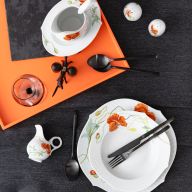 The collection spans classic and modern expressions so you can match your taste and the mood of a room. Relief structures catch the light and lend a vintage character without adding weight. Pure silhouettes bring a modern clarity that lets the recipe speak. Hand-painted and decorated motifs reveal the touch of the studio and may nod to antique inspirations or contemporary graphics. Finishes in gold, silver or platinum add ceremony and will influence how the piece is used. Designs that include precious metals are not microwave-safe and are best rinsed by hand. White porcelain remains timeless and pairs well with various colors from deep blue to fresh green and soft pink. For an easy start on a coordinated service, explore curated tableware sets.